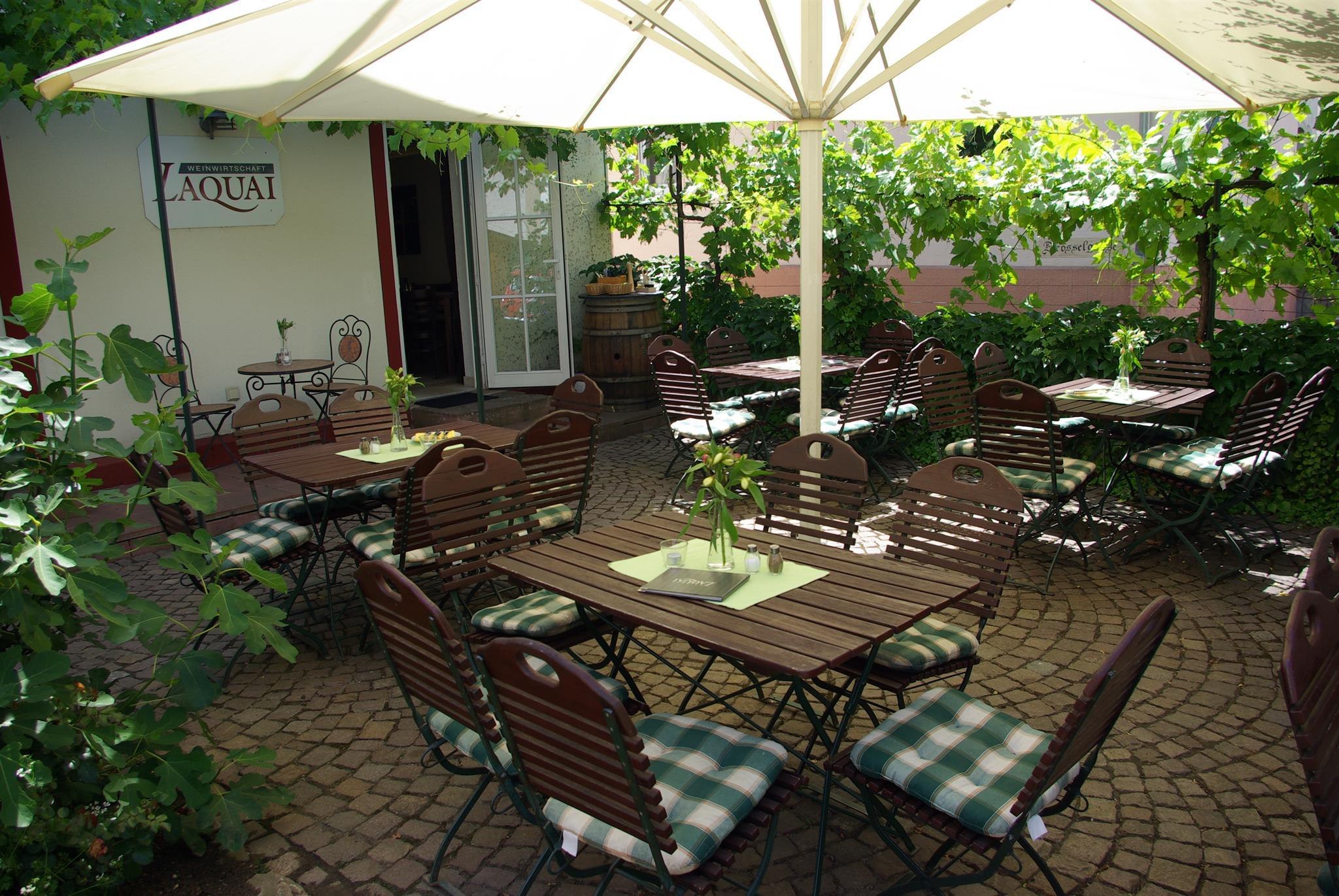 Draußen einen kleinen lauschigen Garten, drinnen Fachwerk und edle Gemütlichkeit, auf den Tellern frisch zubereitete, hausgemachte Gerichte und im Glas den Wein des Weingutes Laquai – wenn Sie all das suchen, haben Sie es bei uns gefunden. Reservierungen unter 06726/839213.