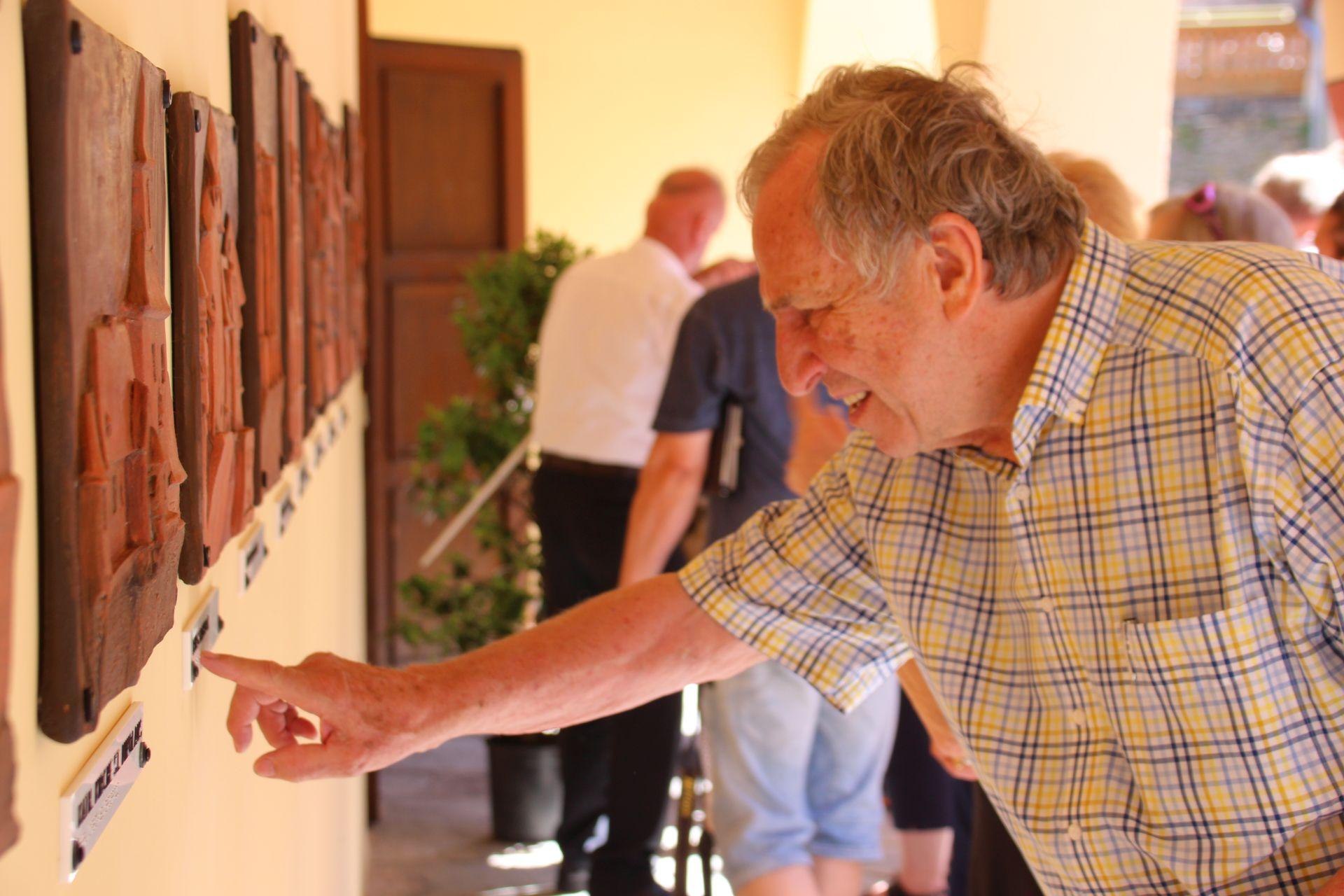 Nun schmücken die Wand des Arkadenganges neun 30 mal 40 Zentimeter große Kunstwerke aus Westerwälder Ton, die jeweils mit einer kleinen Platte in herkömmlicher sowie mit Braille Schrift versehen sind.