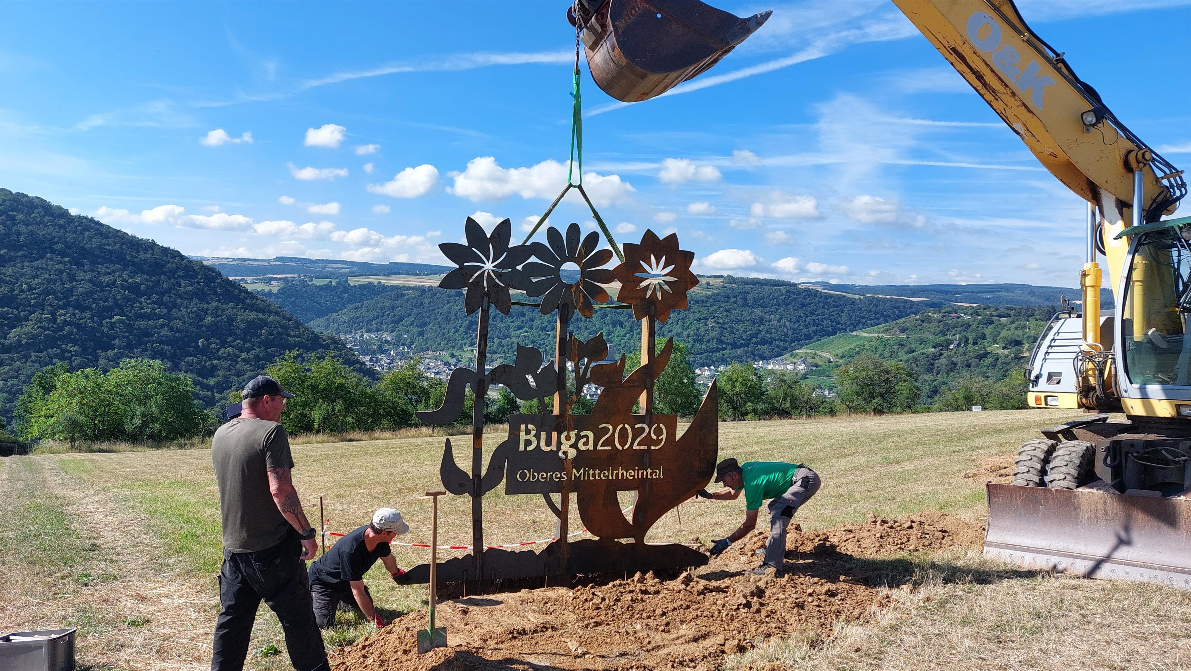 Im Rahmen einer ersten "Blumenpflanzaktion" wurde im Juli 2022 diese Stahlskulptur im Skulpturenpark Urbar-Oberwesel an der Traumschleife Mittelrhein und am Welterbesteig Oberes Mittelrheintal errichtet.