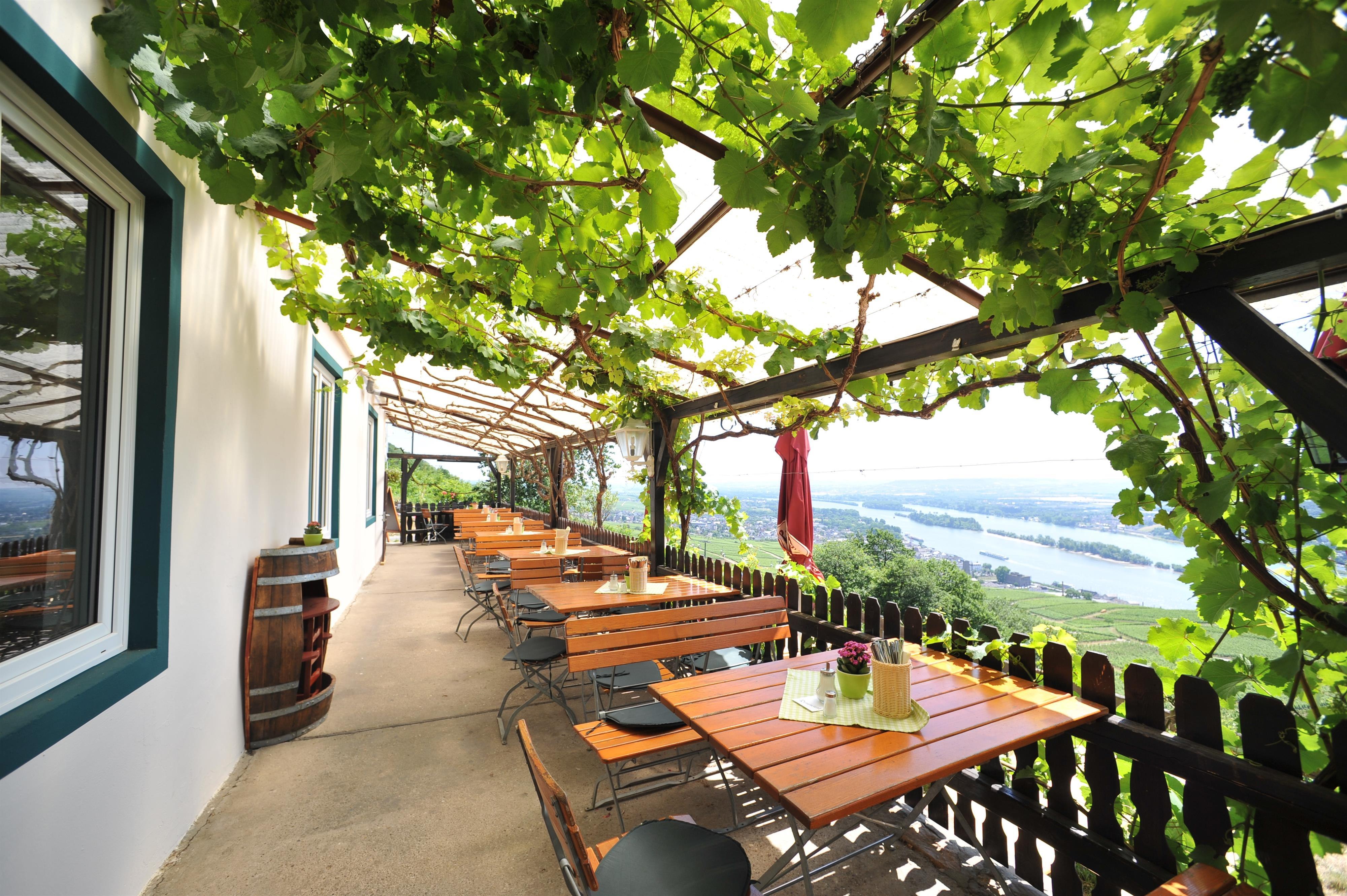 Herzlich willkommen! Das Rebenhaus gehört seit jeher zu den schönsten Ausflugszielen im Rheingau. Von der überdachten, rebenbewachsenen Terrasse bietet es seinen Gästen einen einmaligen Blick über das Rheintal.