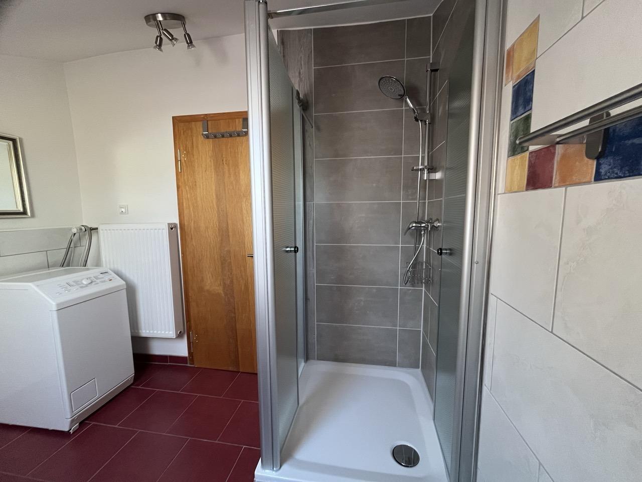 Im Tageslichtbad haben Sie die Gelegenheit in der Badewanne zu entspannen oder zu duschen. Außerdem ist es mit einem Waschbecken, einem Hänge - WC und einer Waschmaschine ausgestattet.