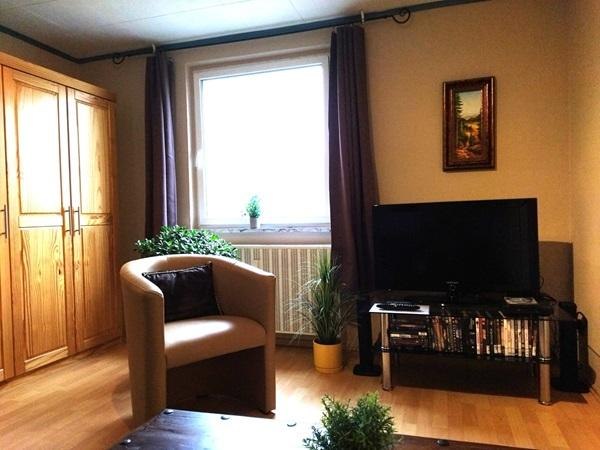 Ausgestattet ist die Wohnung mit einer Einbauküche, einem Esszimmer, einem Wohnzimmer, Bad mit Dusche und einem Schlafzimmer mit zwei Einzelbetten. Geeignet für 2 Personen. Parkplätze sind in der Nähe kostenfrei verfügbar.