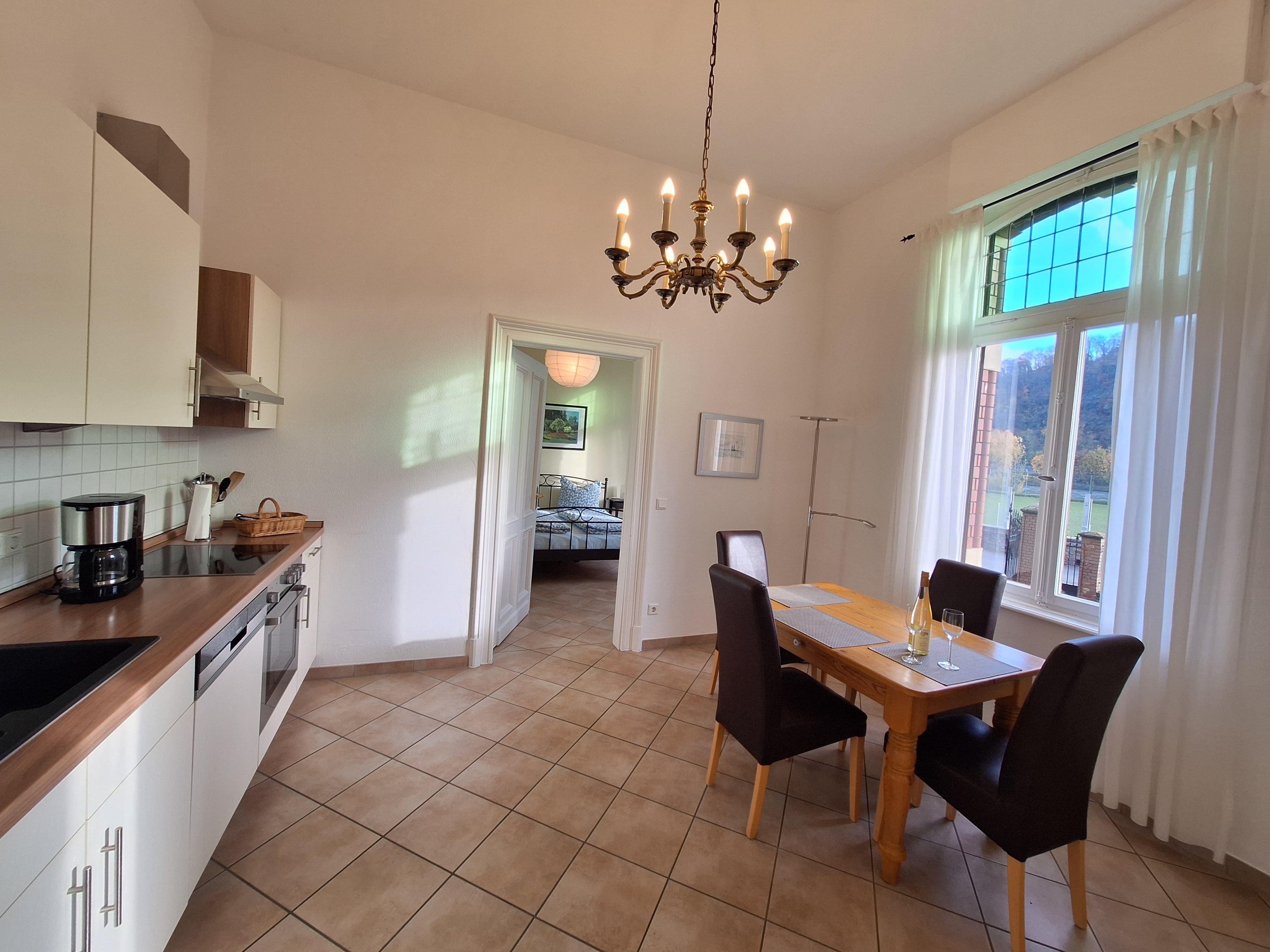Die schöne 75 m² große und voll ausgestattete Nichtraucherwohnung verfügt über ein Wohnzimmer mit Erker und Blick auf Rhein sowie die Festung Ehrenbreitstein, Sat-TV, Stereoanlage, Esszimmer/Küche mit kompletter Küchenzeile und Essplatz mit Rheinblick, Schlafzimmer für 2 Personen mit Rheinblick sowie ein großzügiges Tageslichtbad zur Gartenseite mit Komfortdusche. Der Flur / Garderobe mit Jugendstil-Fenster und zusätzlicher Sitzgelegenheit eingerichtet.