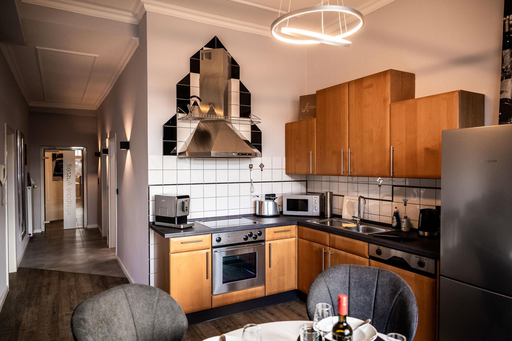 Eine komplett eingerichtete Küche inkl. Kaffeevollautomat