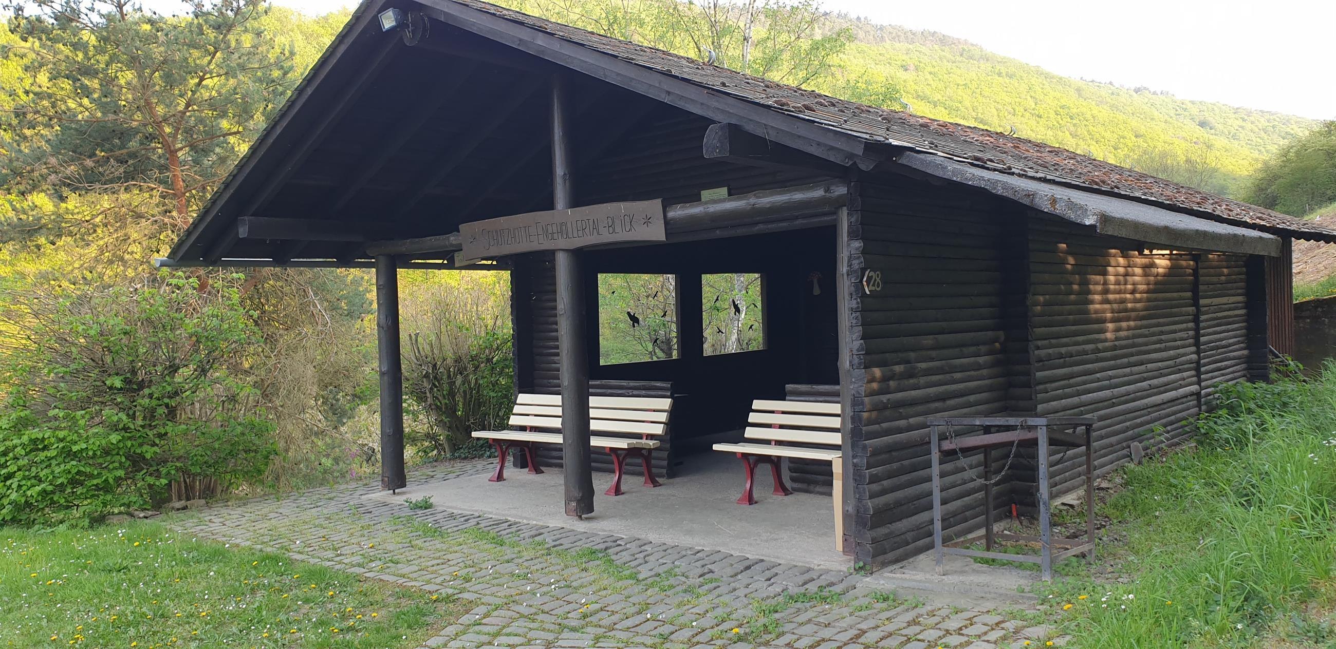 Wunderbarer Rastplatz mit einigen Sitzmöglicheiten, Tischen und überdachter Grillhütte. Schöner Blick auf Burg Schönburg, die Weinberge und das Engehöller Tal. Mit Toilettenanlage und Küche. Anmietung der Grillhütte beim Ortsvorsteher Oberwesel-Engehöll. Parkplätze an der Kapelle.
