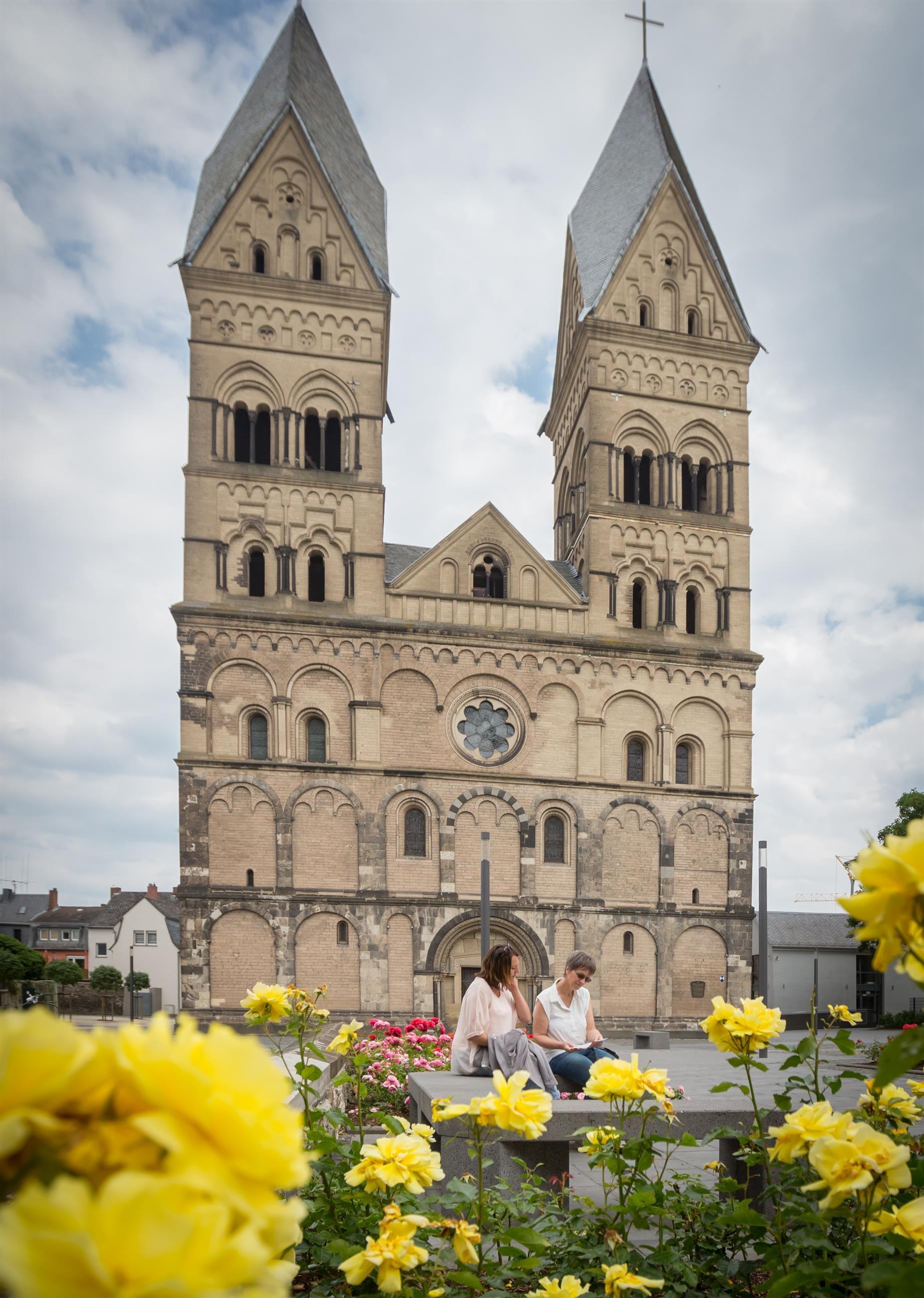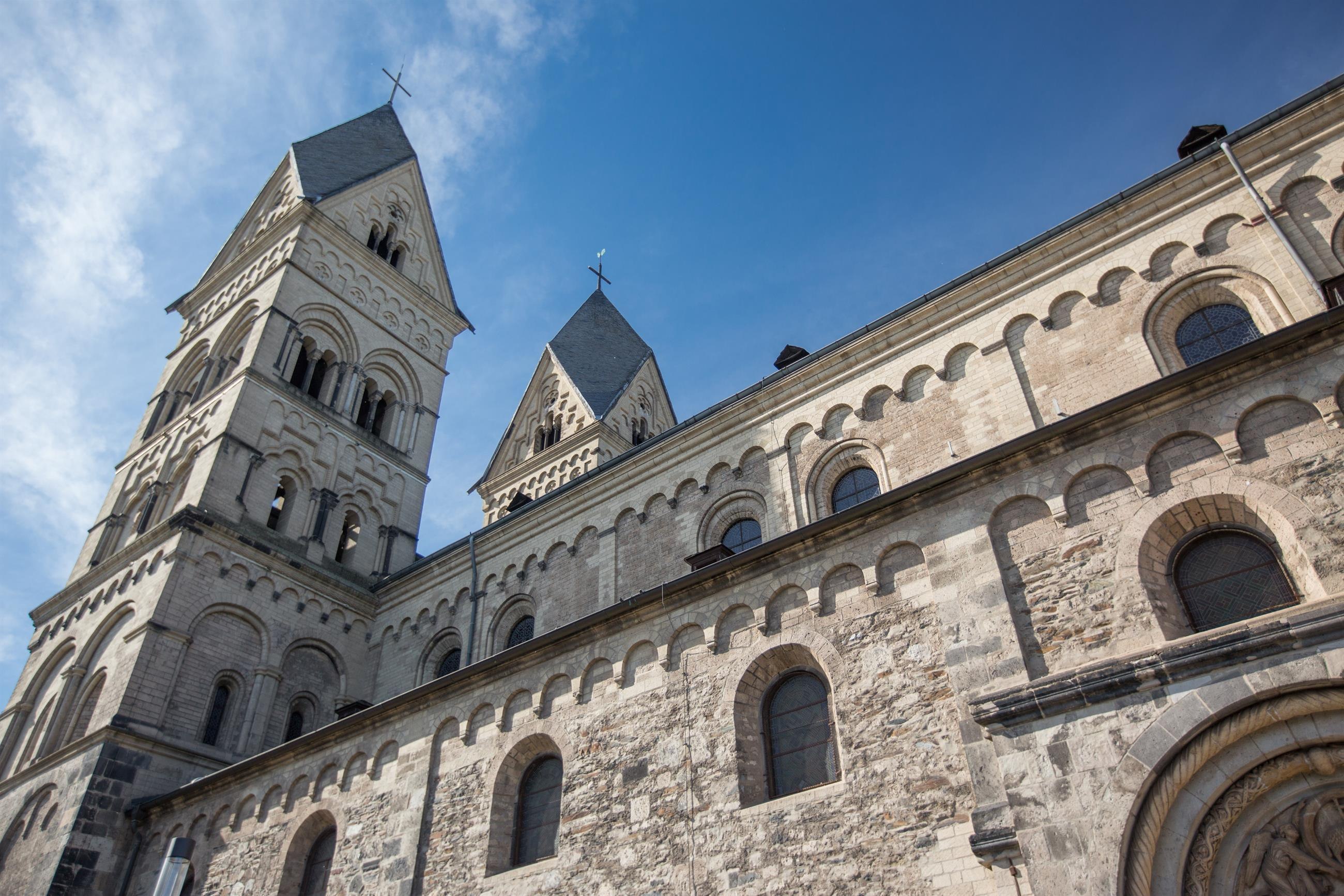Sie ist kein Dom im kirchlichen Sinne und doch gehört die katholische Pfarrkirche Maria Himmelfahrt durch ihren außergewöhnlichen Reichtum an Zierformen und Ausstattung zu den schönsten romanischen Kirchenbauten am Mittelrhein. Ihre vier Türme überragen die dreischiffige Emporenbasilika und bilden mit dem benachbarten Runden Turm eine Stadtbild prägende Erscheinung für ganz Andernach.