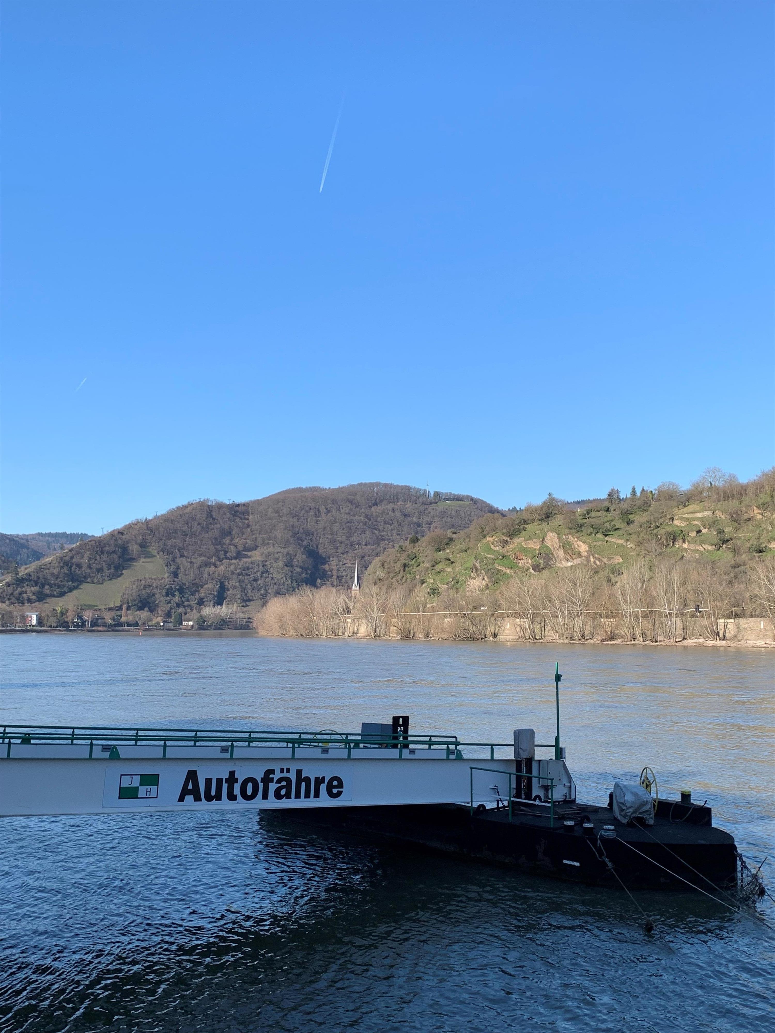 Die Fähre Stadt Boppard der Familie Deleu verkehrt auf dem Rhein zwischen den Städten Boppard und Filsen bei Rheinkilometer 570.
