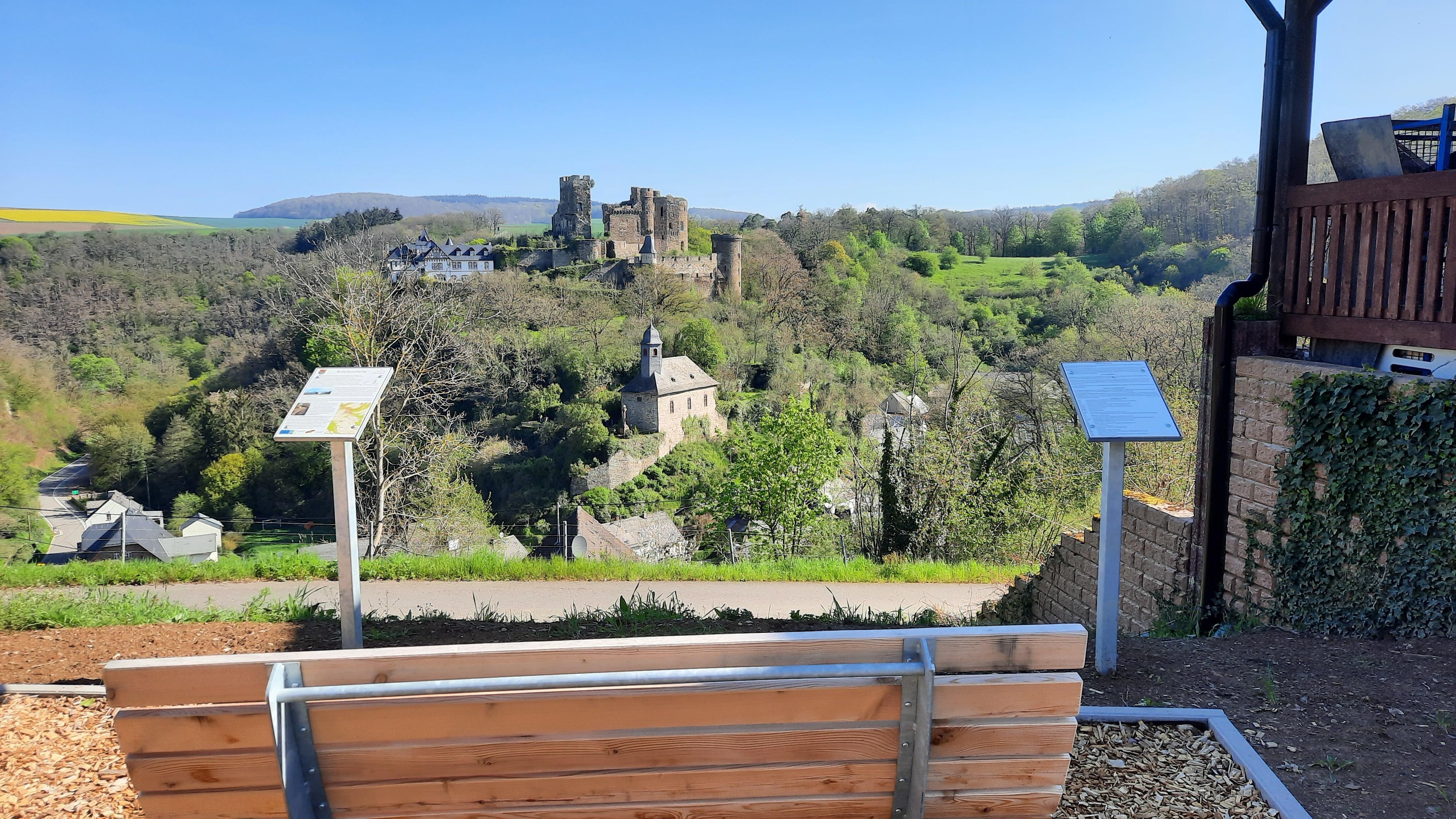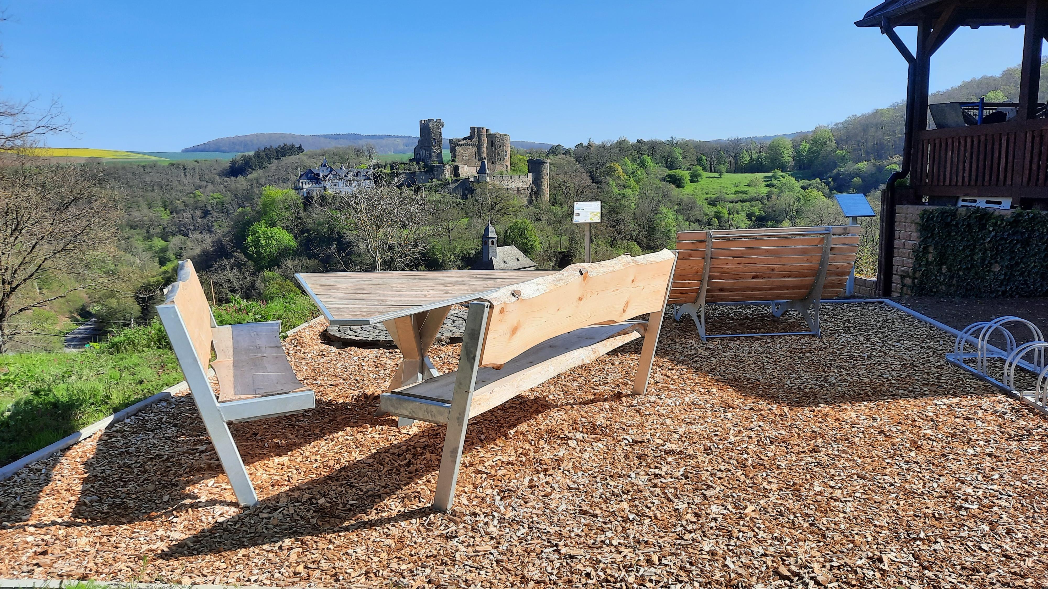 Ruhebank mit Burgblick