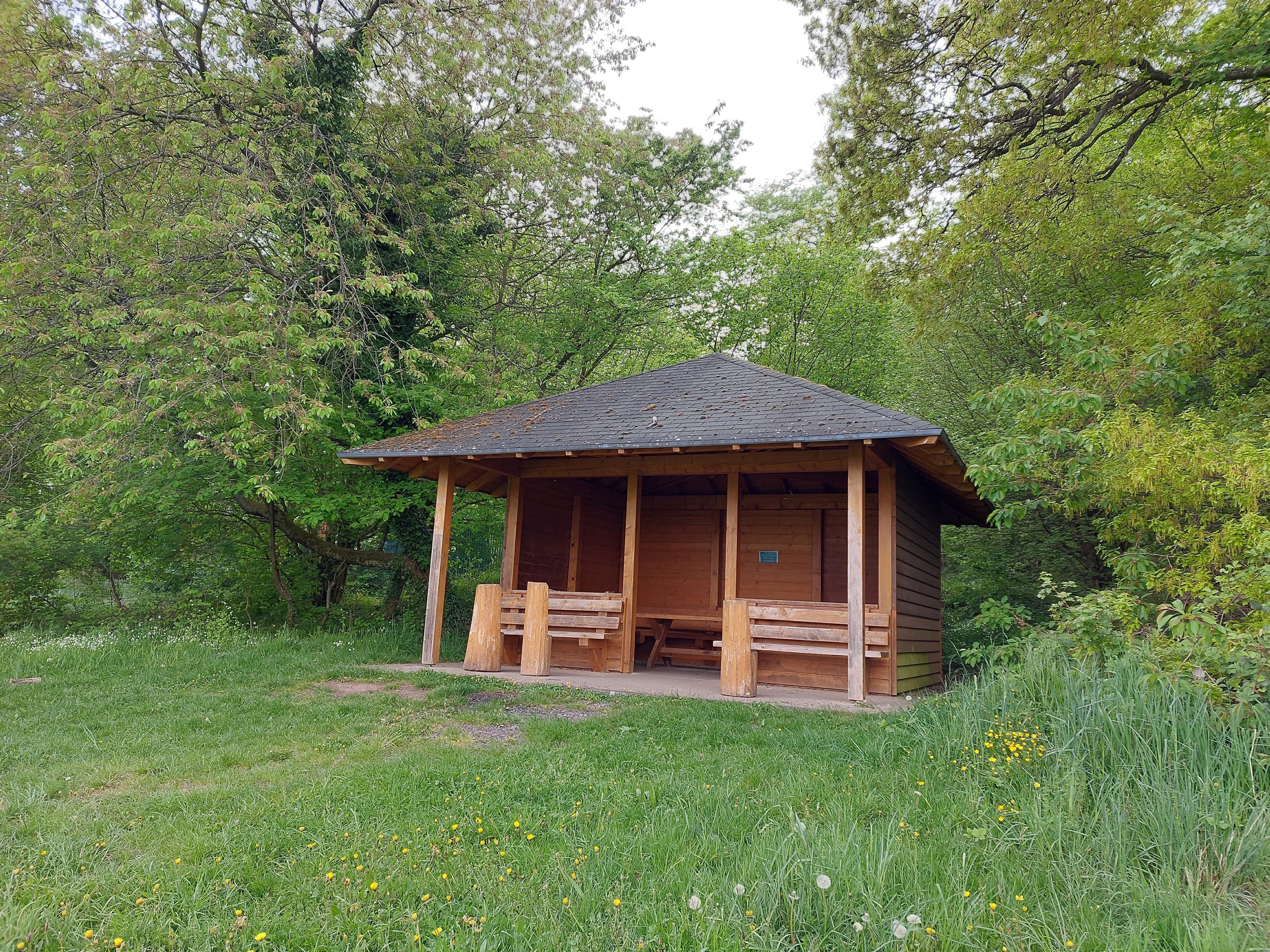 Diese Wanderschutzhütte befindet sich zwischen dem Jugendzeltplatz "am Pfaffenwäldchen" und der Siedlung Rhens- Hünenfeld.