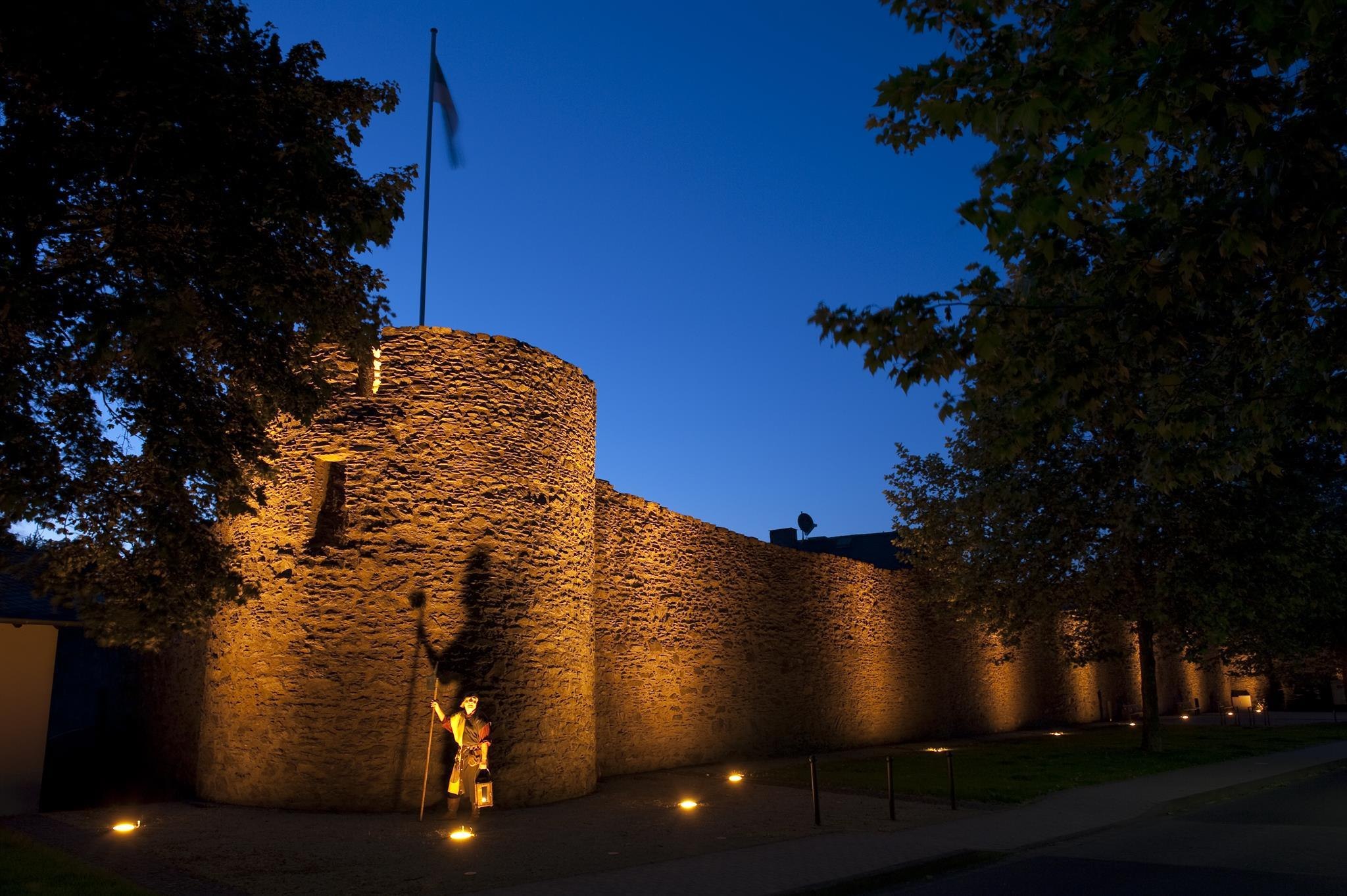 Die Stadtmauer mit den 5 Toren (Kirchtor, Viehtor, Koblenzer Tor, Joseftor und Rheintor) ist zu einem beträchtlichen Teil noch heute erhalten. Der markanteste Teil der Stadtmauer ist der „Scharfe Turm" am Rhein. Einst diente er als Späh- und Zollturm, später war er Gefängnis und Folterkammer.