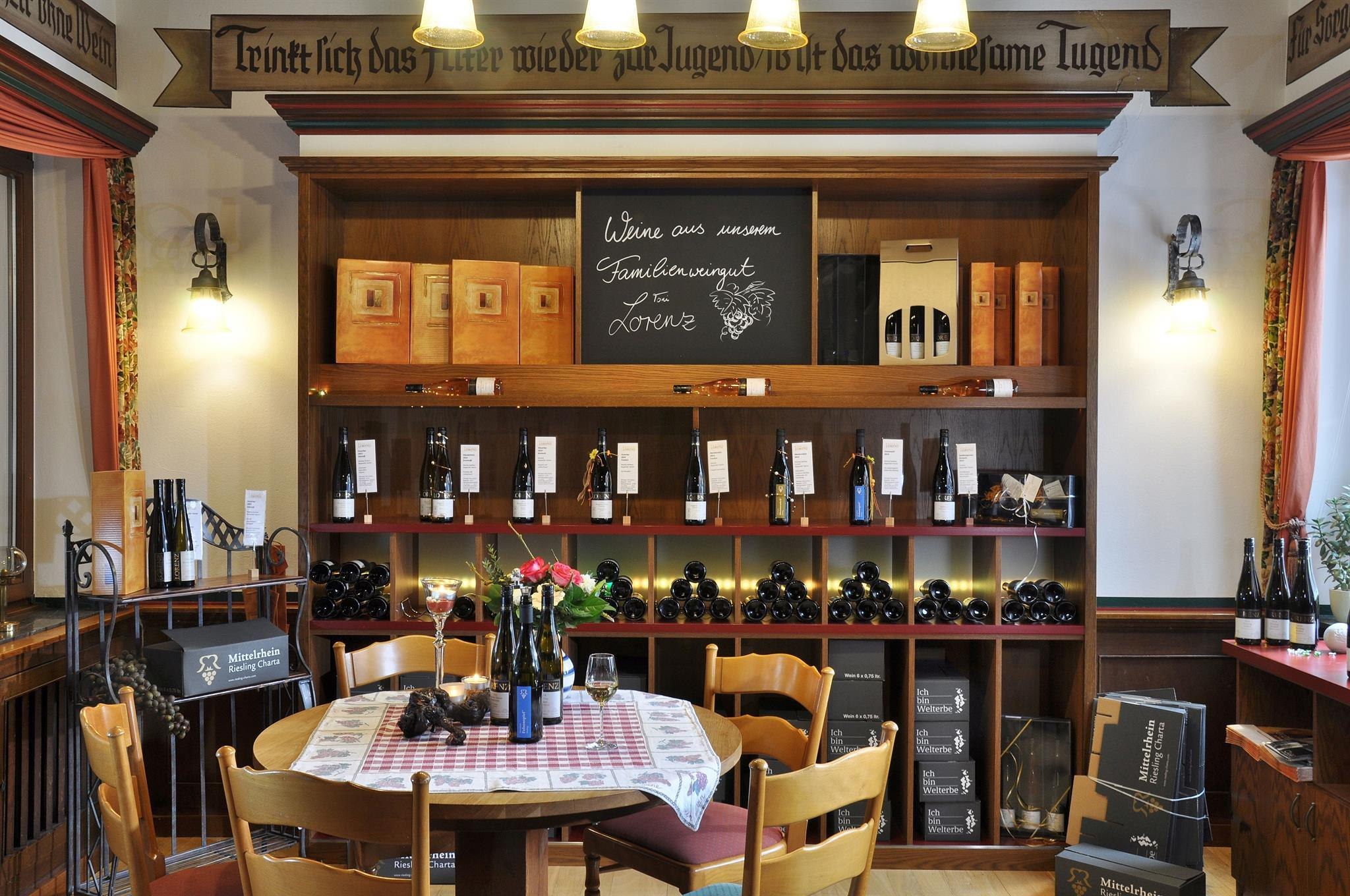 Eine große Rolle spielen in unserer Heimat natürlich die exquisiten Weine. Lassen Sie sich den Genuss vor allem der edlen Riesling-Tropfen aus den weltberühmten Steillagen des Mittelrheintals nicht entgehen und kosten Sie! Zum Beispiel bei einer Weinprobe in unserer schönen Vinothek, zum Essen in unserem gemütlichen Restaurant, auf der sonnigen Panorama-Terrasse oder auch gleich inmitten der romantischen Weinberge.
