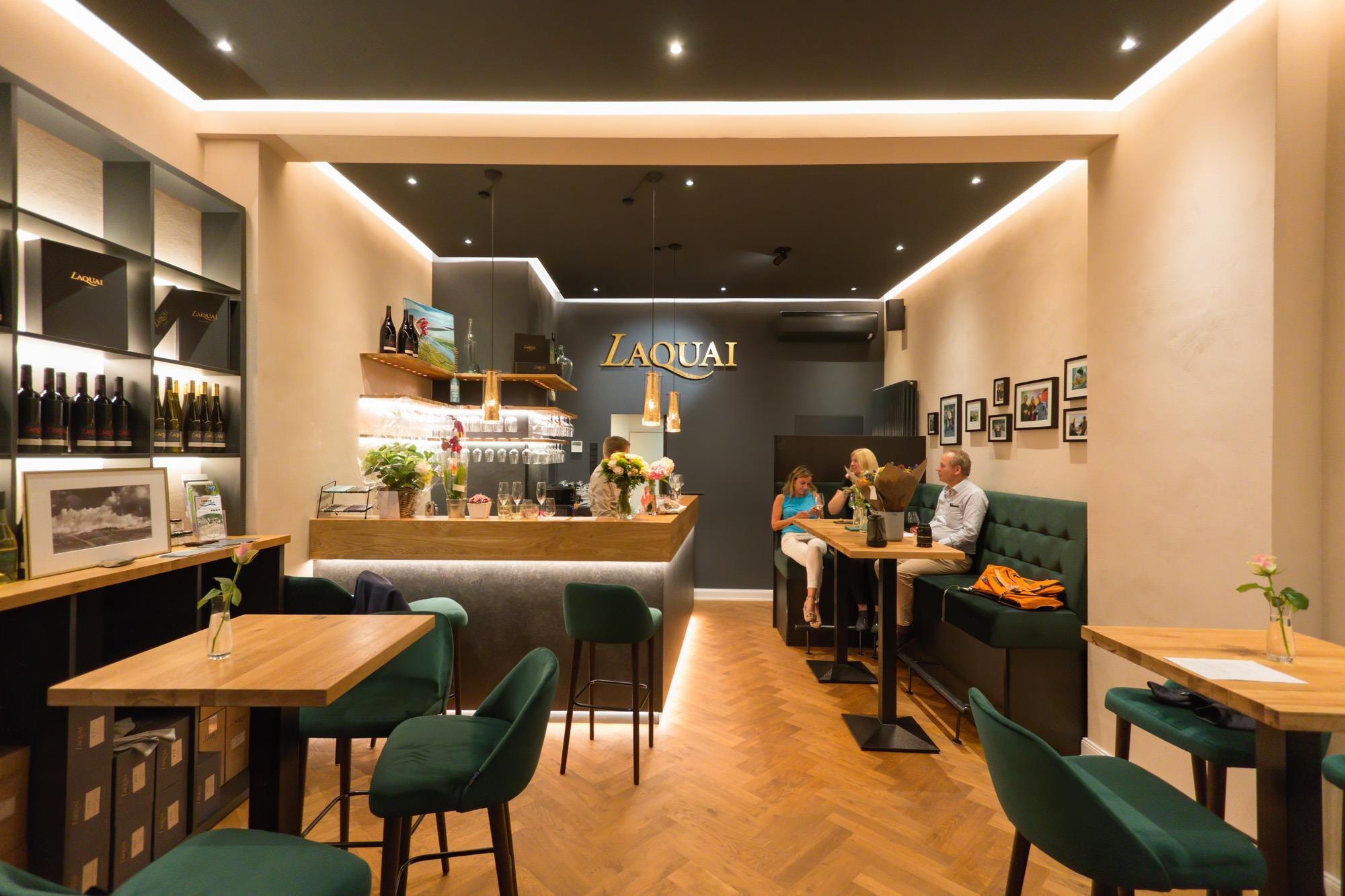 Gemeinsam mit Kerstin Hatje wurde in Wiesbaden die Vinothek Laquai eröffnet. In bester City-Lage gibt es dort das gesamte Laquai-Sortiment zu verkosten, begleitet von kleinen Snacks wie Smörrebröds, Handkäsetatar, frisch gebackenes Winzerfladenbrot mit zweierlei Spundekäs. Alle Weine, Sekte und Brände gibt es dort auch zum Mitnehmen.