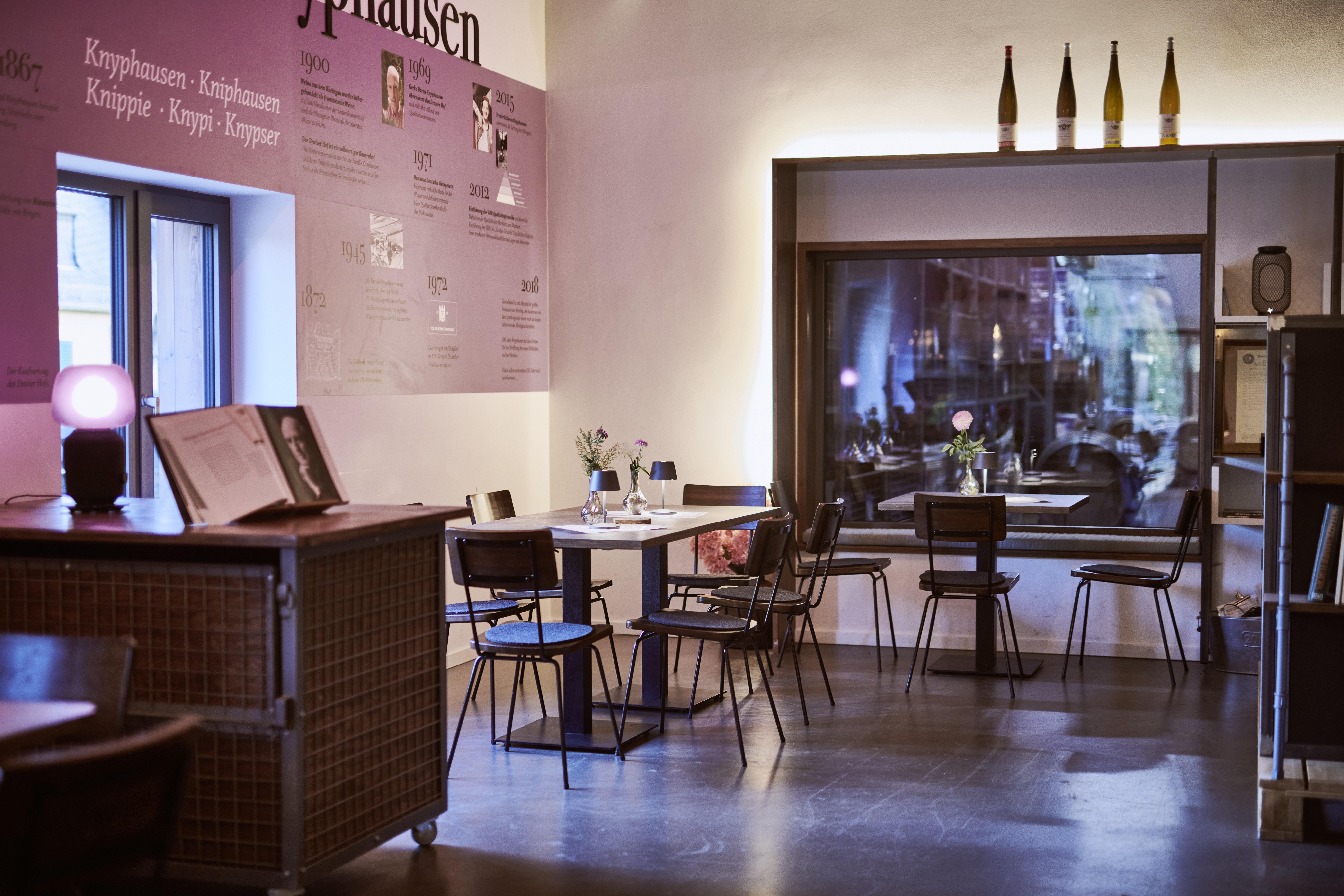 Die VDP-klassifizierten Weine kannst Du in der Weinbar oder der Weinlounge sowie in individuellen Weinproben verkosten. Seit dem Jahrgang 2021 haben die Macher komplett auf ökologisch zertifizierten Weinbau umgestellt, sie verzichten somit auf chemische Spritzmittel. Neben dem Weingut beherbergt der Draiser Hof ein kleines Boutiquehotel sowie Räumlichkeiten für Tagungen und Firmenevents.