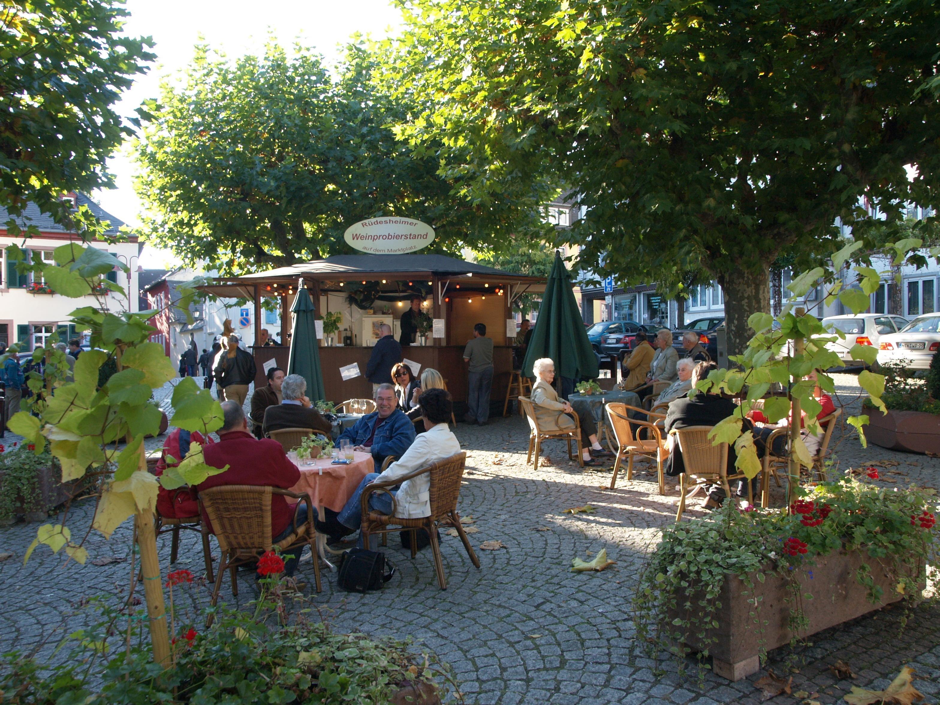 Weinprobierstand am Marktplatz Rüdesheim