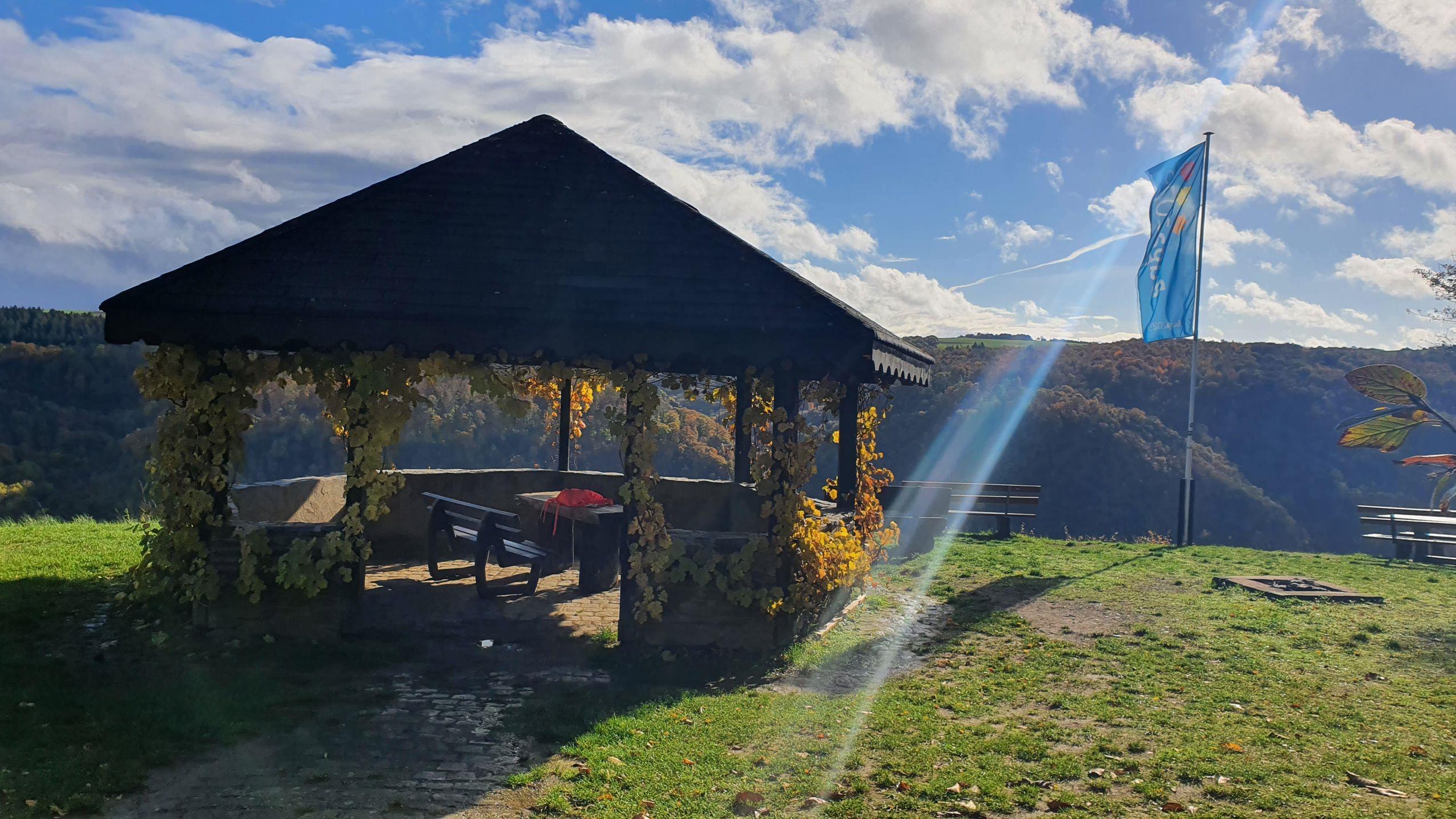 In the steep slopes of the Urbar Beulsberg, it was not possible until the 19th century to build roads that could be driven on with teams. The harvested grapes had to be laboriously carried upwards on their backs with so-called leeches. Therefore, still in the vineyard, but in an easily accessible area - a larger place was built. There stood the ladder wagons, usually harnessed to cows, with 2 - 3 vats, into which the winegrowers could fill their harvest. They could also help each other with the supervision of the animals and had more helpers available in the vineyard. The place also offered itself for a common breakfast and so one had the idea to build a suitable weather protection. Since both the World Heritage Trail, the Rhine Castle Hiking Trail, and the Middle Rhine Dream Loop pass by this place, the refuge is now mainly used by hikers as a resting place. From here, there is a magnificent view of the Rhine bend at the Roßstein on the right bank of the Rhine and Oberwesel.