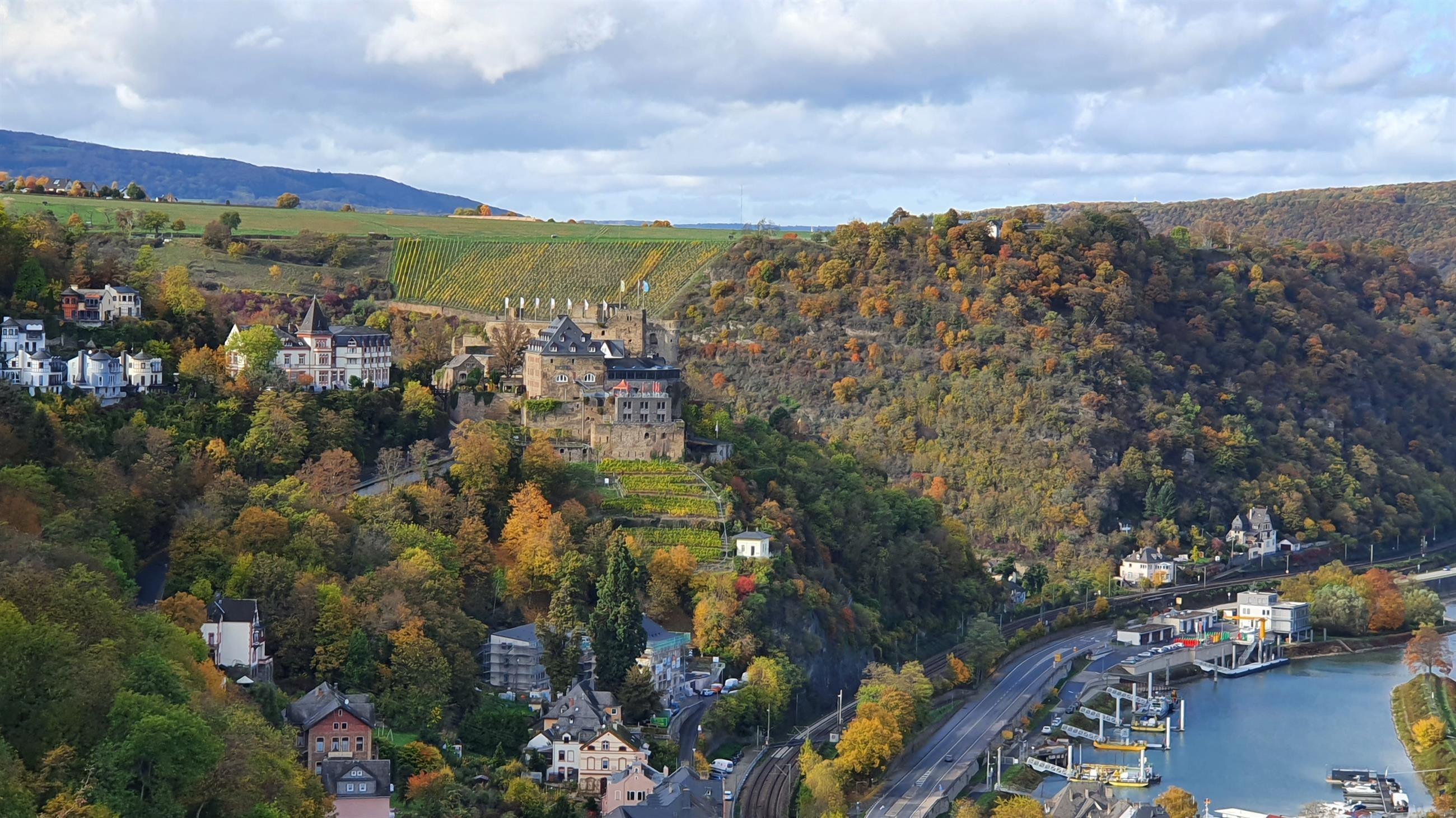 Viewpoint "Wackenberg" with a view of the Rhine and the castles Rheinfels and Burg Maus.