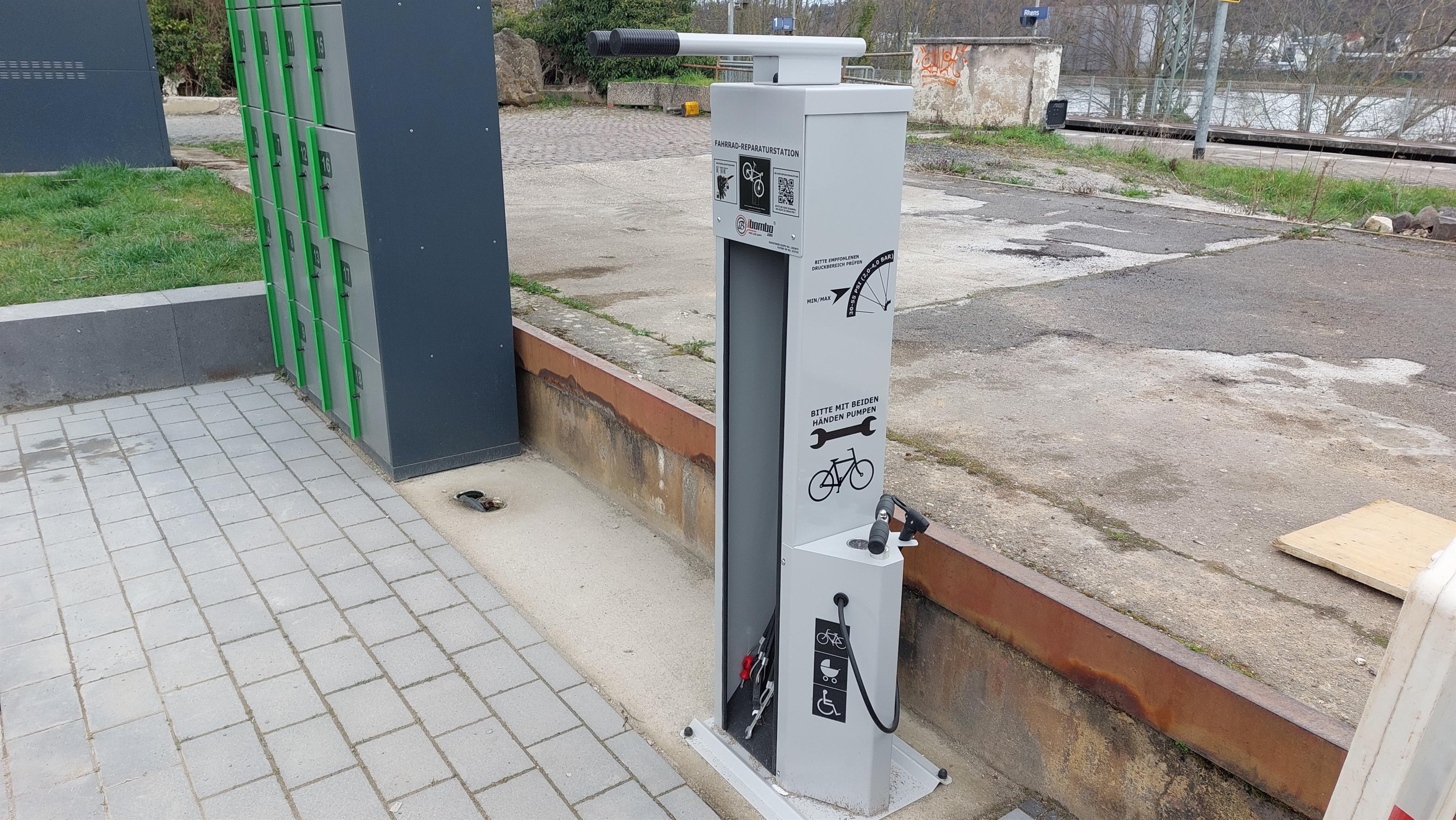 The bicycle repair station has the most important tools needed for simple repairs of the most common bicycle breakdowns.