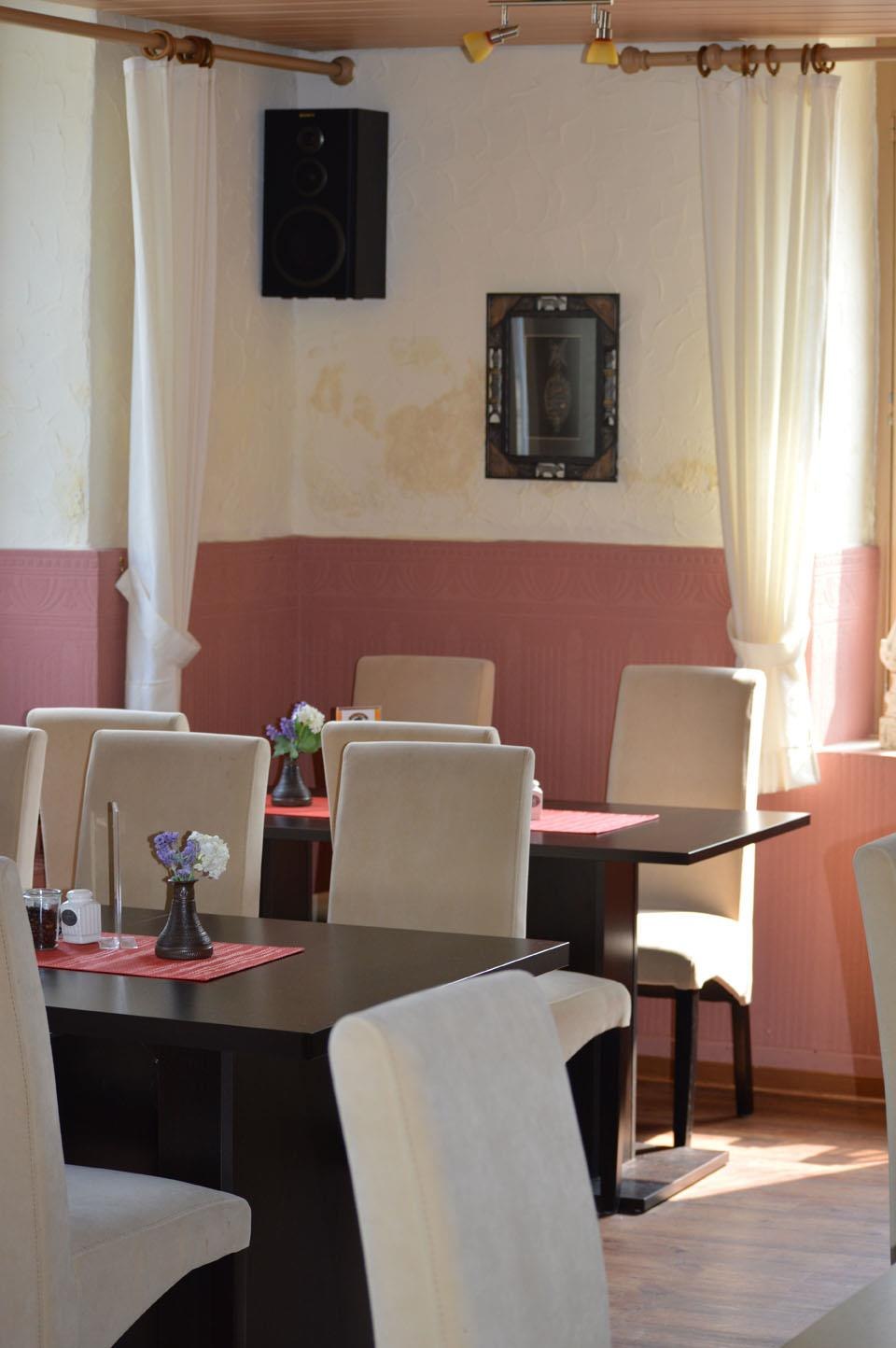 A restaurant, a snack bar and a kiosk are adjacent.