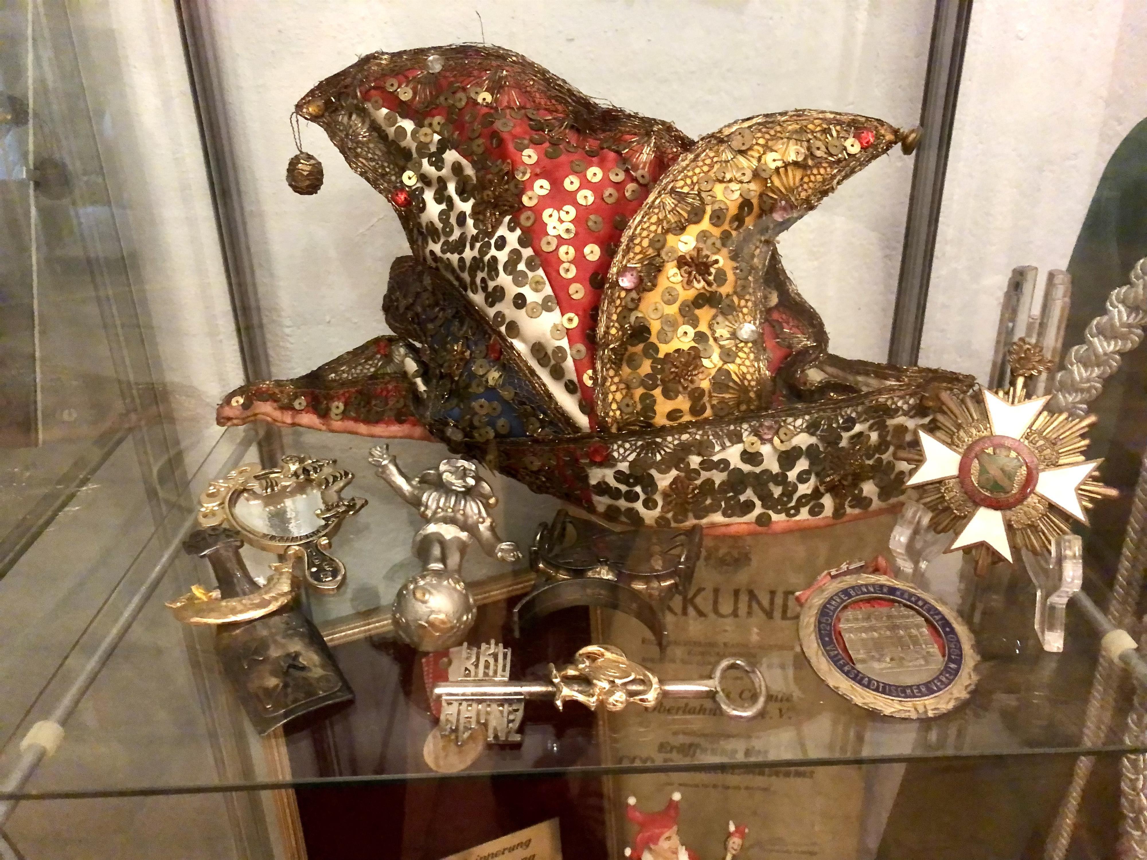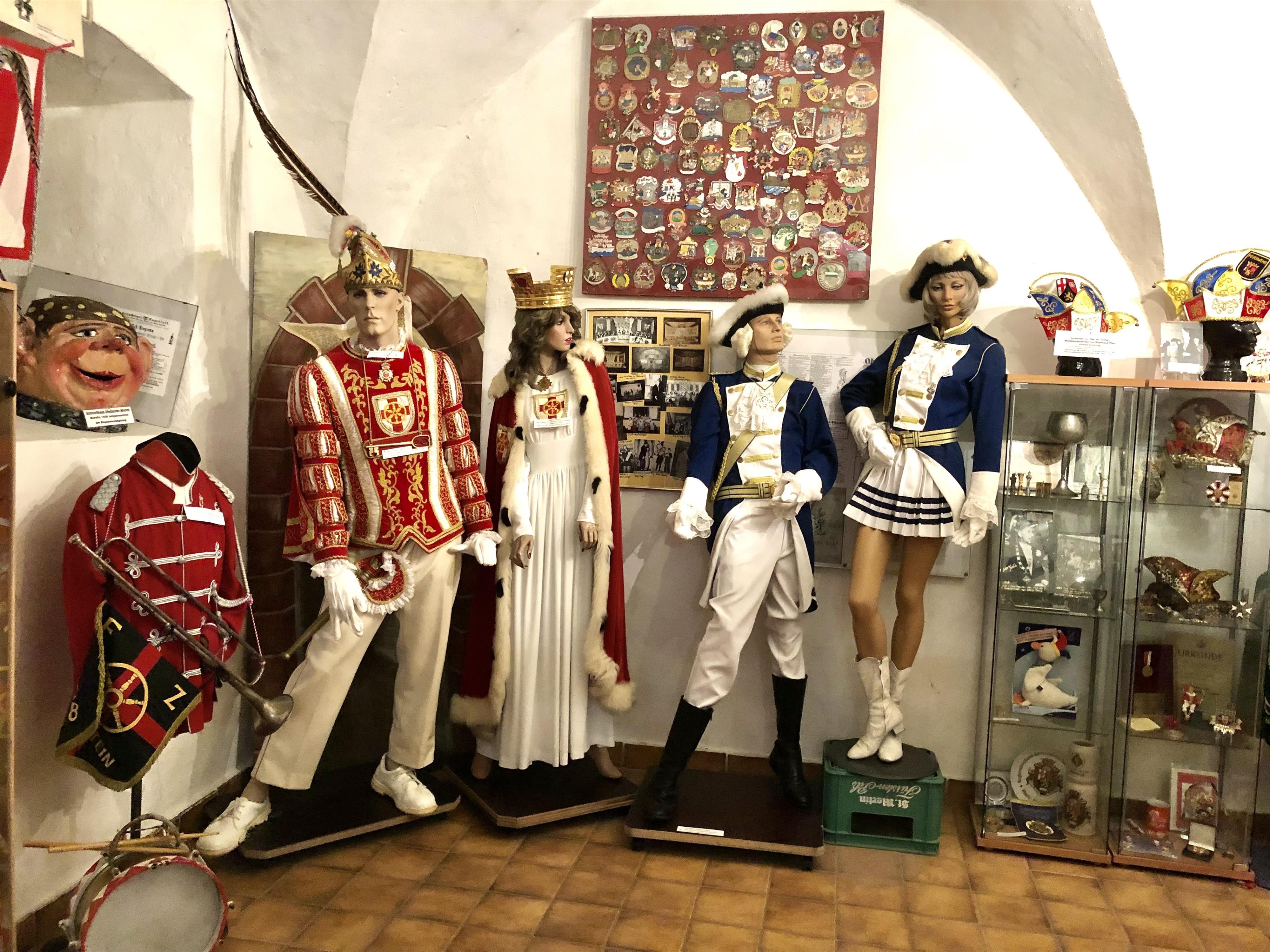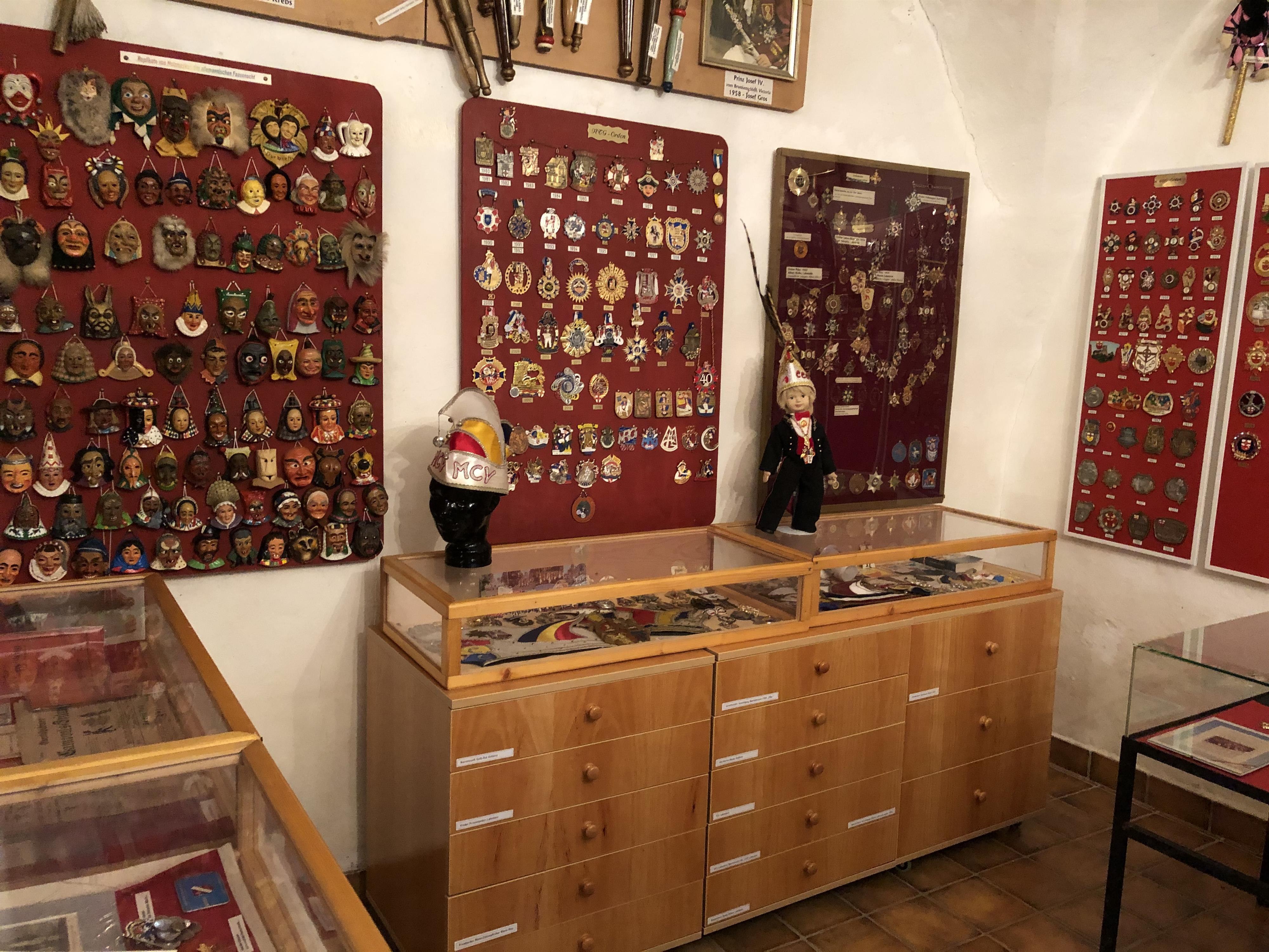 Hundreds of carnival badges tell their own stories. Of course, the classic jester attributes such as jester hats, scepters, uniforms, and other curiosities can also be admired.