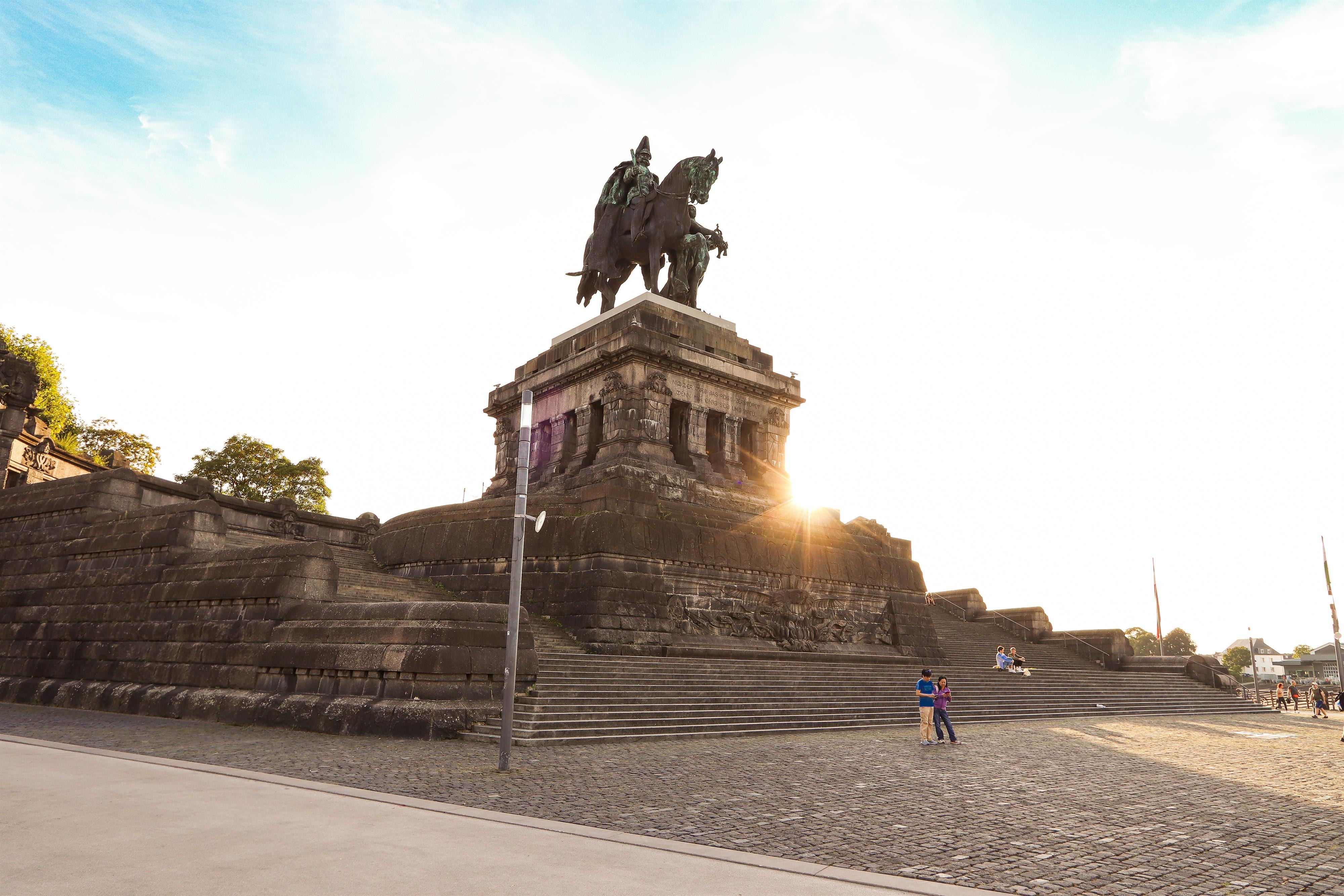 Destroyed during artillery shelling in March 1945, Theodor Heuß dedicated the riderless pedestal as a memorial to German unity in 1953. It housed a flag pole with the German flag until 1993. A reconstruction of the memorial was finally raised onto the pedestal in the autumn of 1993. The 37-metre high monument - 14 metres of which is the equestrian statue of Kaiser Wilhelm I - is now a tourist magnet for over 2 million people per year and has been part of the UNESCO “Upper Middle Rhine Valley” world heritage site since 2002.