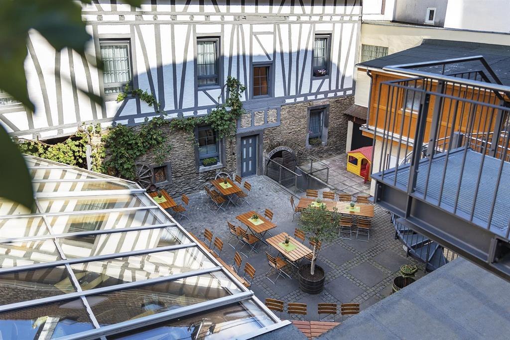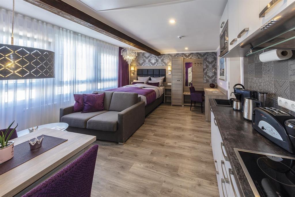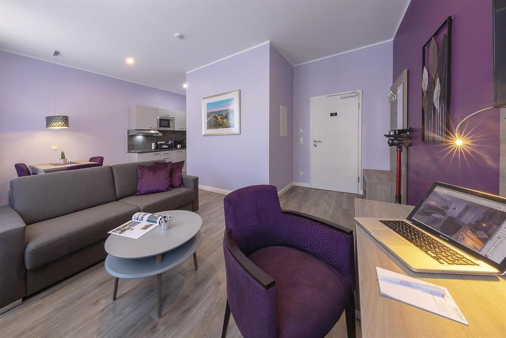 The non-smoking apartments of Haus Burgenheimat belong to the AKZENT Hotel "Roter Ochse" right next door. Haus Burgenheimat has 8 apartments, each with a bedroom, a bathroom and a living area with integrated kitchen and dining area. If you can't stay inside, you can stretch your legs in the small but nice village center of Rhens, which impresses with its historic half-timbered houses and the restored and illuminated city wall. Refreshments are available in the nearby pubs. You can get new impressions and new material for your next undertakings at the Tourist-Info at the old town hall. We are an ideal starting point for extensive hiking tours, impressive boat trips, sightseeing and much more. Conveniently located, only 10 km from Koblenz and Boppard, we are easily accessible by bus and train. The train station is 400 m away and the nearest bus stop is only 130 m away. In only a few minutes you can reach the freeways A61 and A48 by car.