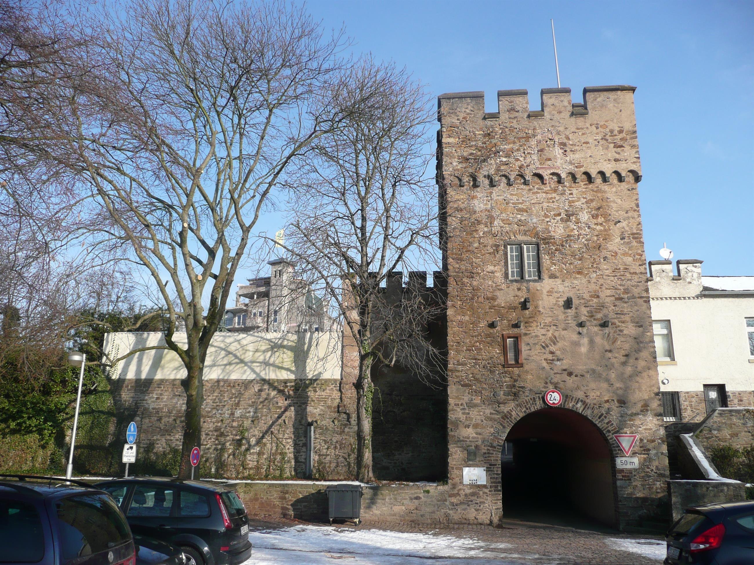 The Kihrstor is located in the Rhine facilities and is the only remaining city gate of the Oberlahnstein city fortifications. It is situated on Brunnenstraße in Oberlahnstein. The city gate is part of the square gate tower, which was built from rubble stone masonry and is 15 meters high. The tower features a battlement and a stair turret. It protected the bridge located in front of it. The tower was built higher as the city was attacked by Count Michel of Wertheim in 1436.