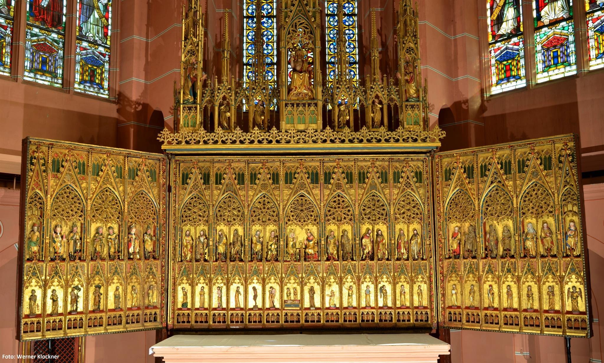 Construction work on today’s Church of Our Lady began in 1308. Its unique architecture and furnishings make it one of the most important High Gothic churches in the Rhineland. Apart from the original filigree rood screen, its greatest treasure is the Golden Altar, one of Germany’s oldest High Gothic altar shrines. Of the sumptuous medieval wall paintings, 25 murals have been preserved
