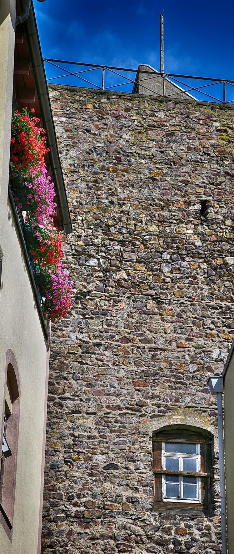 Whoever visits Rüdesheim can easily recognise why the front castle also got the name Marktburg (Market Castle). Directly on the market square, lies the erstwhile noble seat of a side line of the powerful lords of Rüdesheim. Today, only the bergfried of the mediaeval citadel, which was constructed before 1276, has been preserved. Its building history is practically unexplained. What is known, however, is that the castle complex, together with other fortified edifices in the town area – such as Brömserburg Castle or Boosenburg Castle – once served as home to the noble lords of Rüdesheim. The favourable location at the gate to the Middle Rhine allowed the town to blossom into an important trading centre in its day, in which the nobility were able to eke out a very adequate existence. The rapids of the “Binger Loch” saw to it that the major share of trade in goods took place at that spot on the land route and therefore went through their hands.