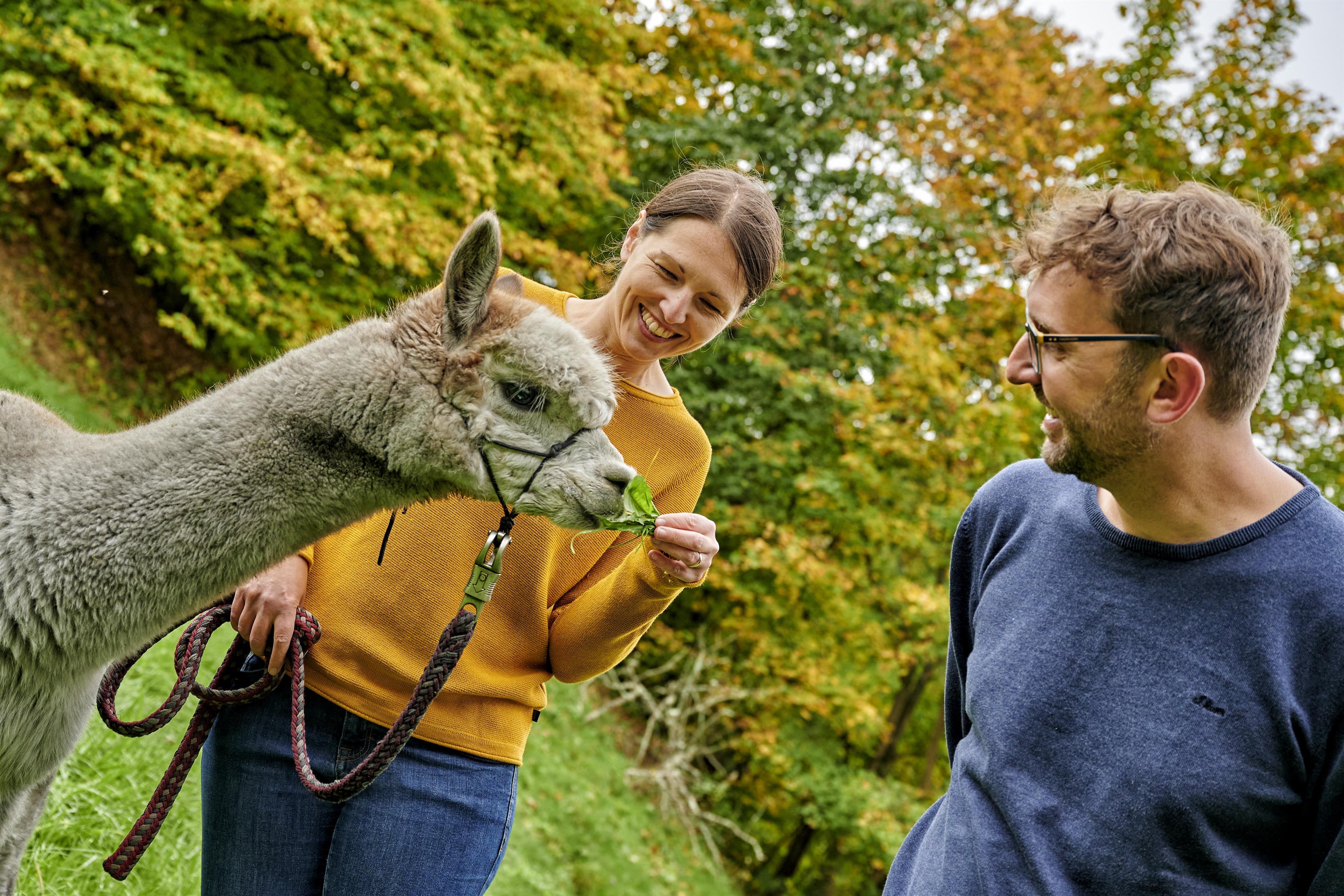 Welcome to the Middle Rhine Alpacas Accompany our curious alpacas on a hike through the World Heritage Upper Middle Rhine Valley. Follow enchanted paths, enjoy fascinating views and slow down from the stress of everyday life. "Animals are best friends. They don't ask questions and they don't criticize." Alpaca hikes: https://www.mittelrhein-alpakas.de/alpaka-trekking/ This is us: Linda and Andy. What started with a dream quickly developed into a heart project for us. We have been proud alpaca owners since 2020. We take you on an alpaca tour through the beautiful Middle Rhine Valley. Our goal: to bring people, animals and nature closer together, to experience unforgettable hours and to get to know people from all over the world.