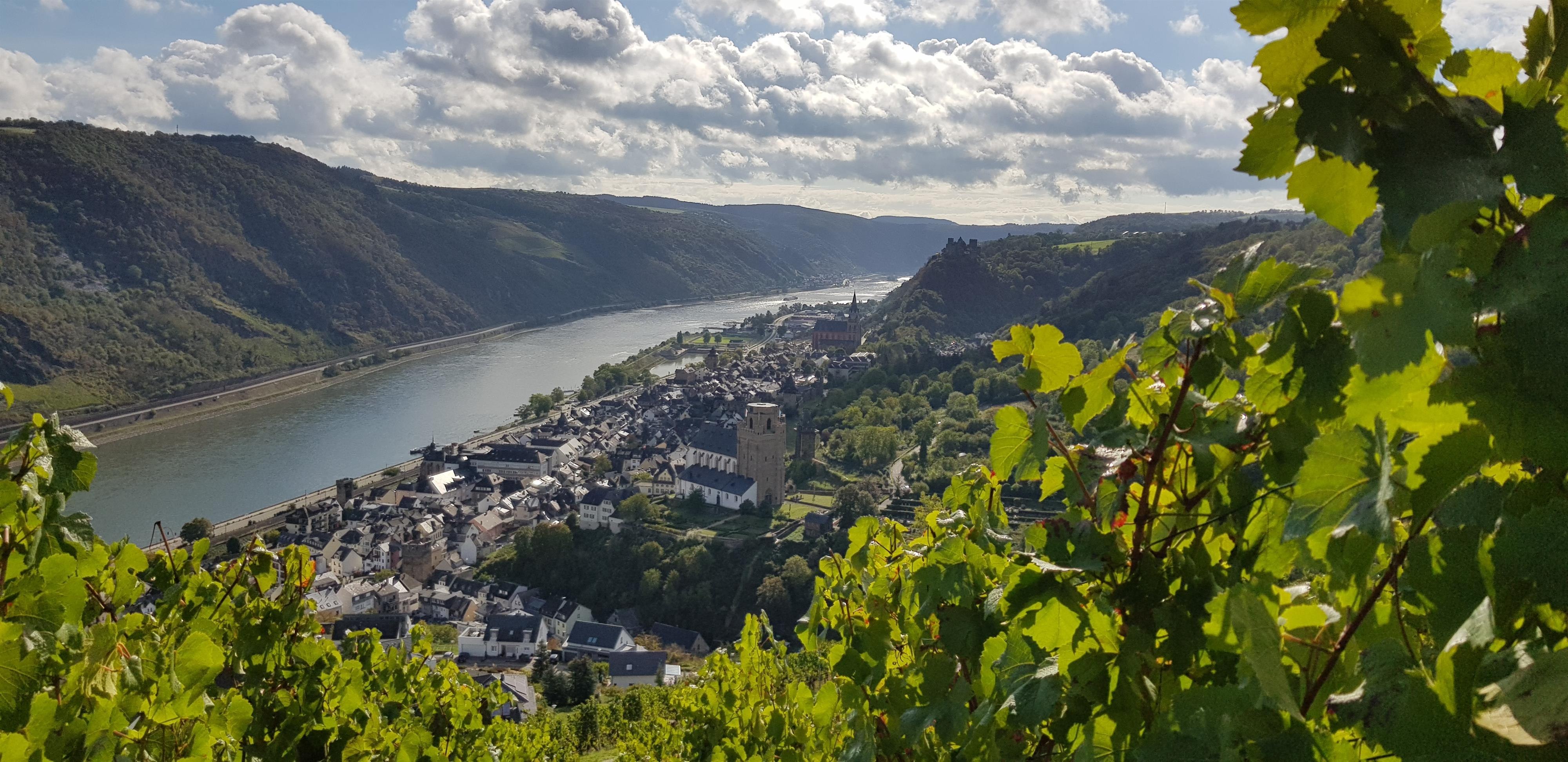Beautiful picnic bench in the vineyard with a view of Oberwesel and the Rhine.