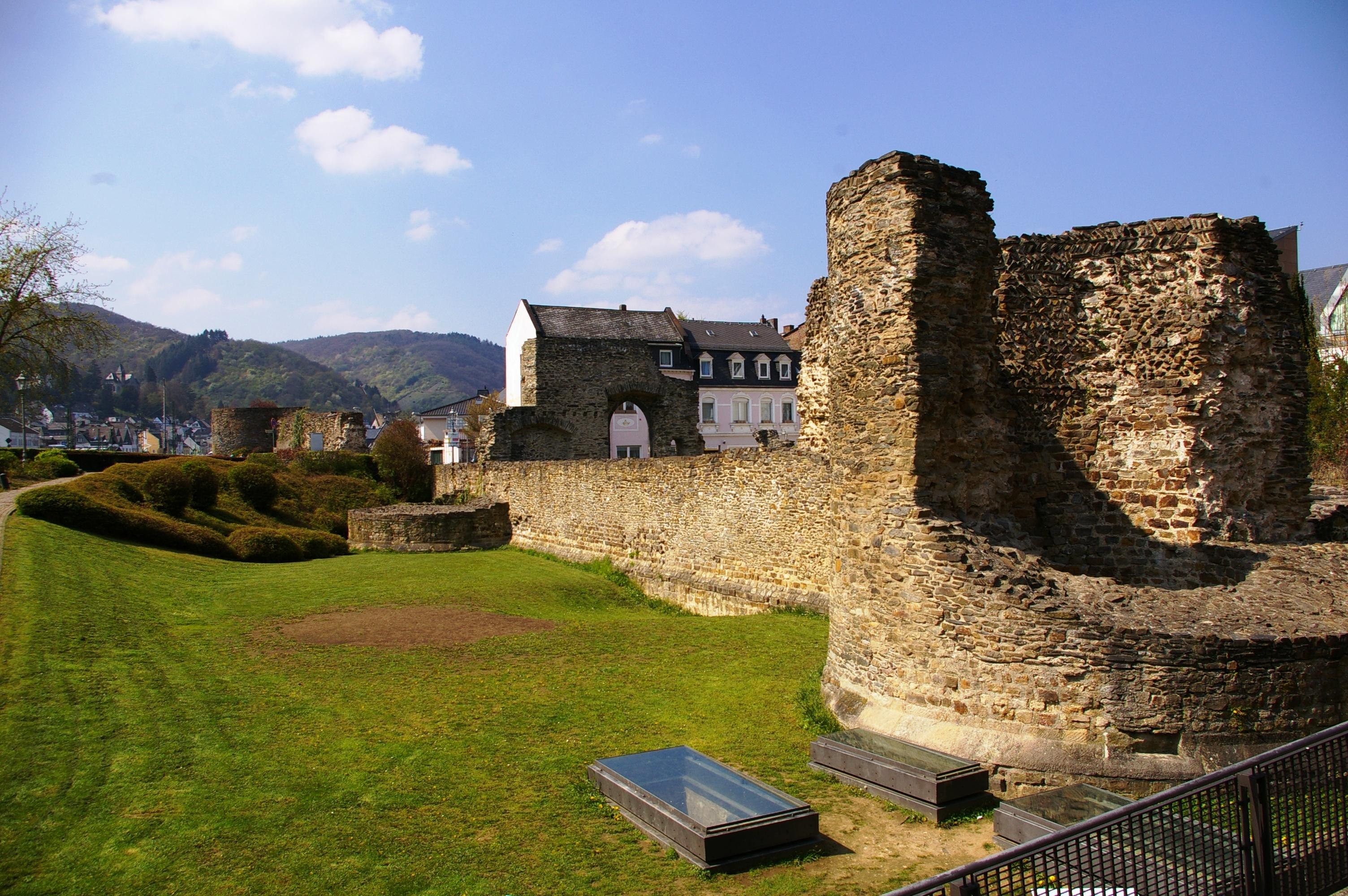 The remains of the Roman complex surround today's town center and are the best preserved Roman fortress walls in Germany. You will find the freely accessible facility on Kirchgasse / corner of Angertstrasse in the center of Boppard. Viewing is possible at any time.