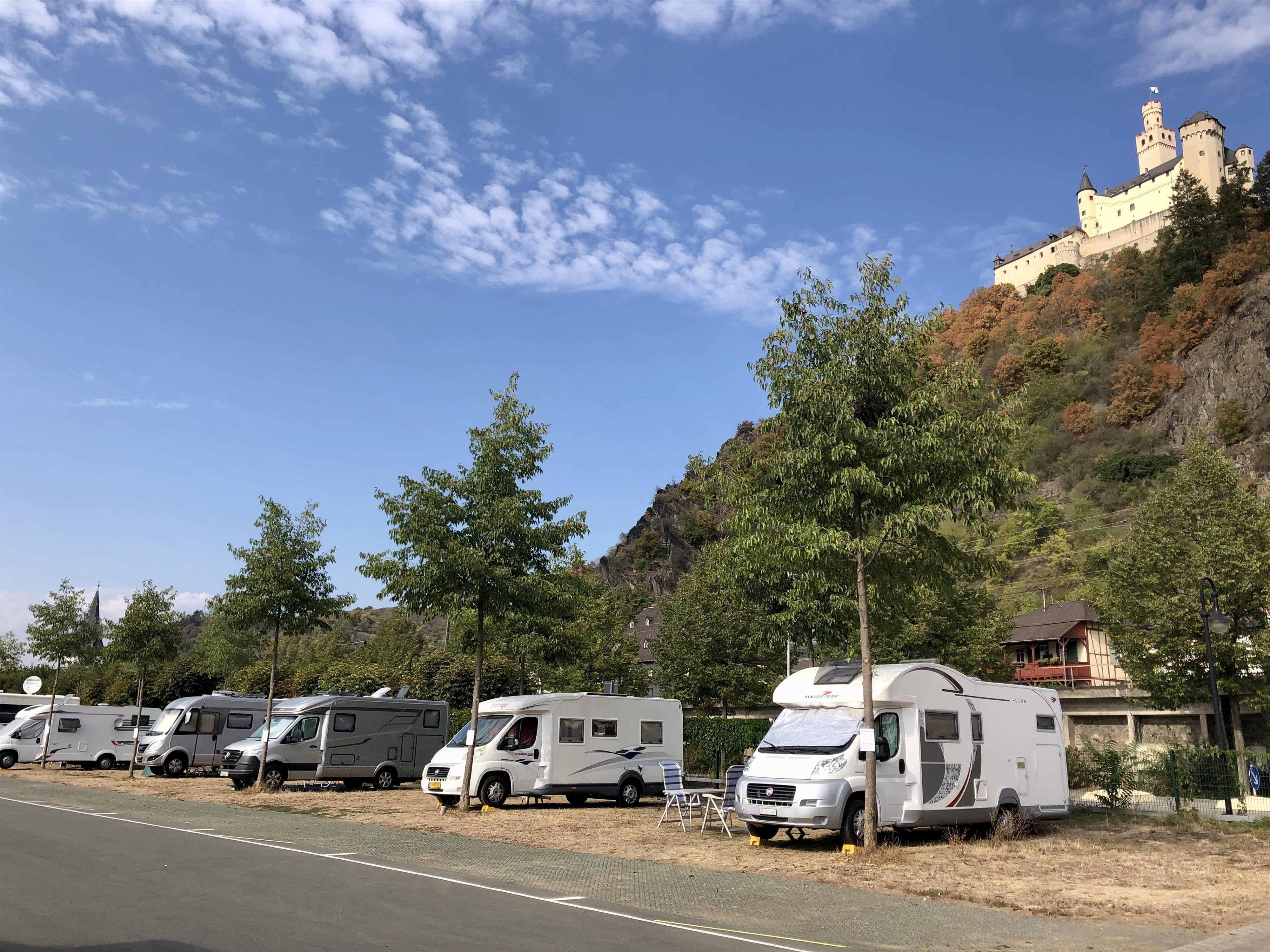 Its location directly on the banks of the Rhine and the impressive view of Marksburg Castle make the predominantly asphalted site a popular destination for motorhomes from near and far. The duration of the stay is not limited in time. Whether just for a few hours, a weekend or several days, everyone is welcome.This also applies to pets.