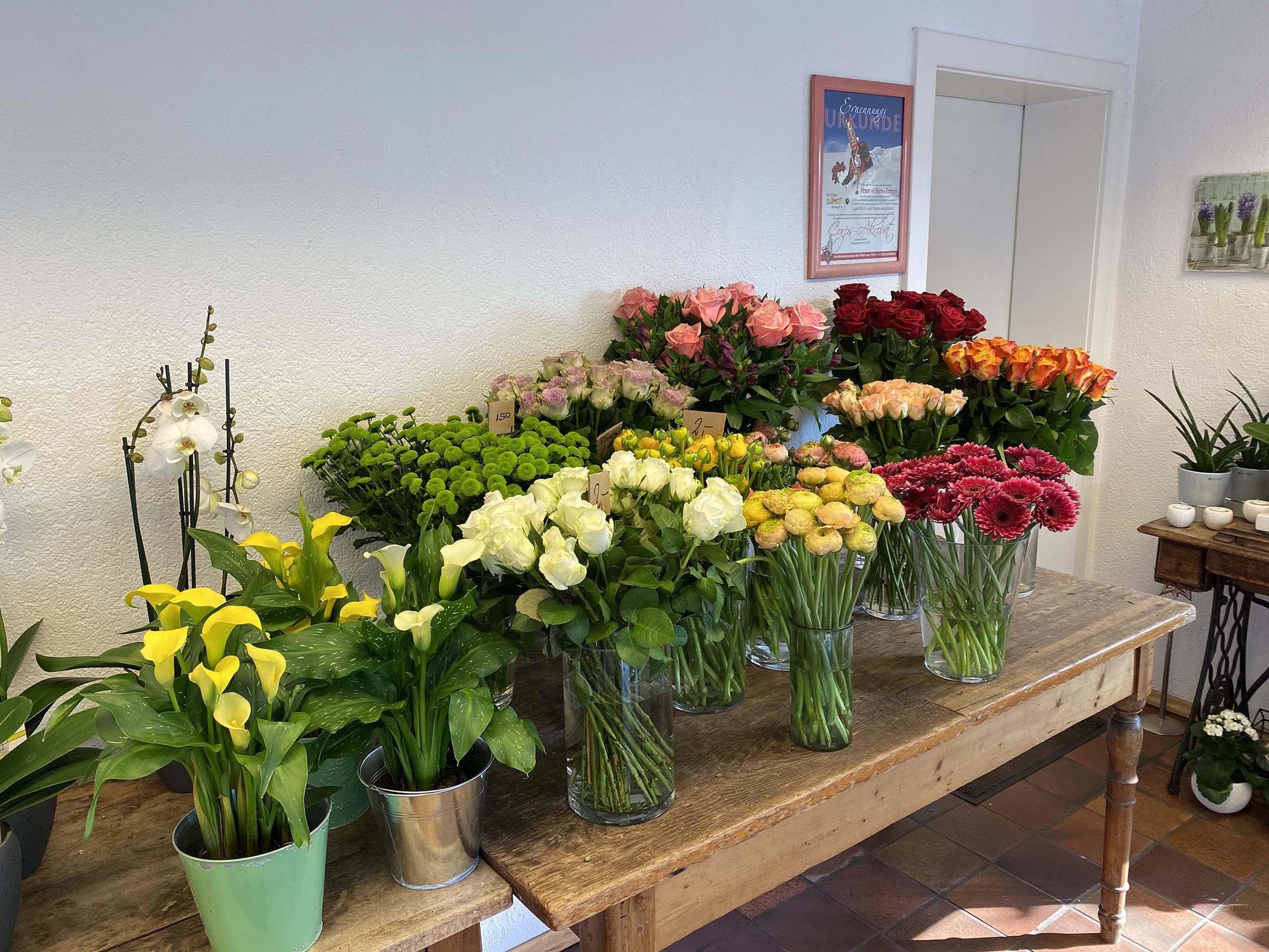 Het bloemenassortiment omvat alle variëteiten van moderne bloemisterij. Het team geeft je graag advies. Samen vinden we het juiste idee voor elke gelegenheid. Onze diensten: moderne bloemisterij bruidsbloemwerk potplanten balkonbeplanting grafverzorging uitvaartbloemwerk Advies en nog veel meer.
