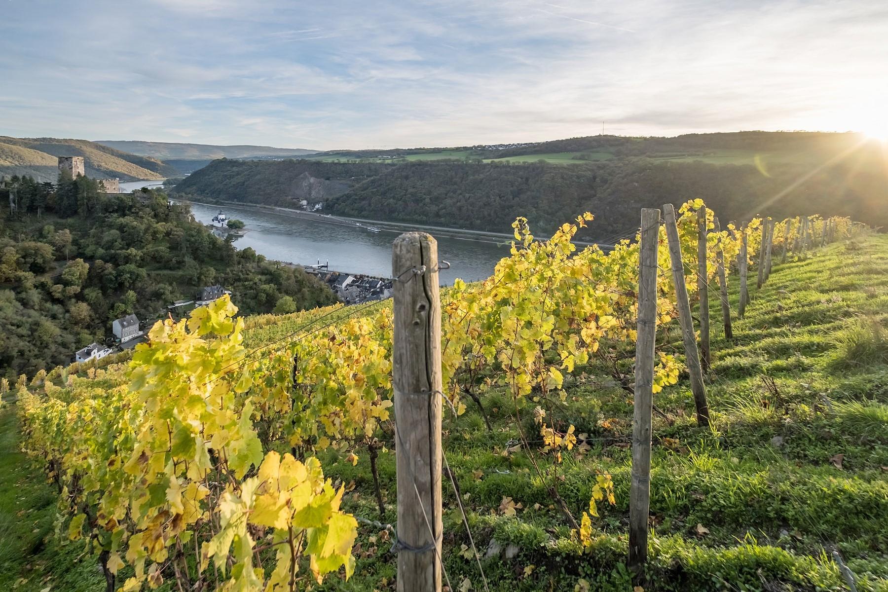 Omgeven door wijngaarden ligt het Burghotel boven Kaub.