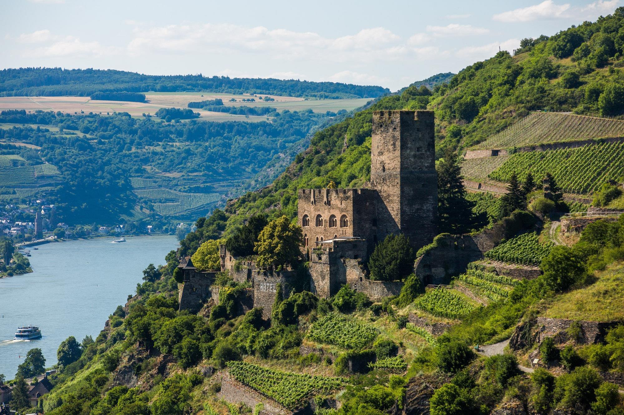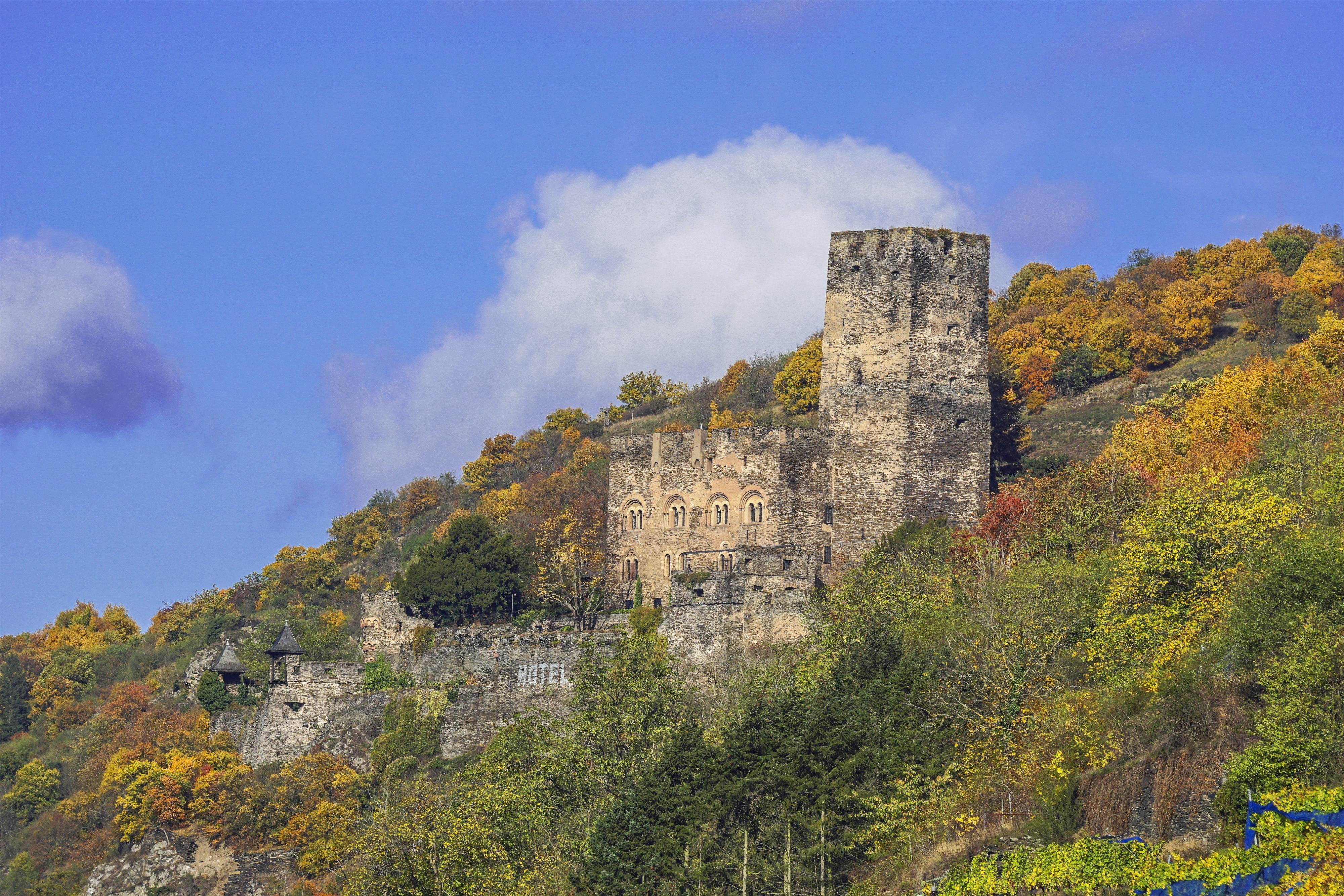 Het kasteel, gelegen nabij de Rheinsteig, is sinds 2022 weer een kasteelhotel en biedt een stijlvolle overnachtingsmogelijkheid.