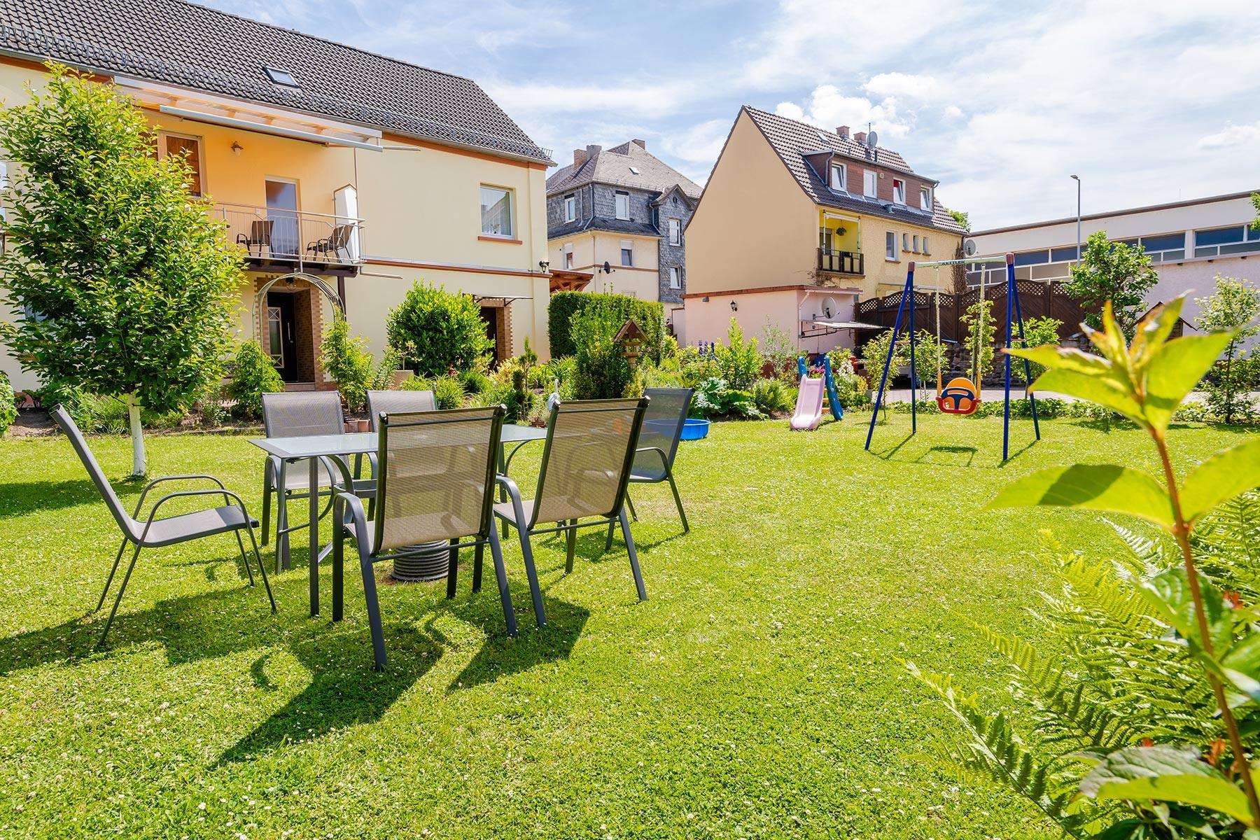 Twee vakantiewoningen voor drie tot vier personen op een rustige locatie in het centrum van Oberlahnstein. De appartementen van 55 m² respectievelijk 68 m² beschikken elk over twee slaapkamers, een woonkamer met sateliet-tv, een volledig uitgeruste keuken en een badkamer/ wc. Een grote ligweide met tuinmeubelen en barbecuegelegenheid zijn ook bij het huis aanwezig, net als een gastenparkeerplaats.