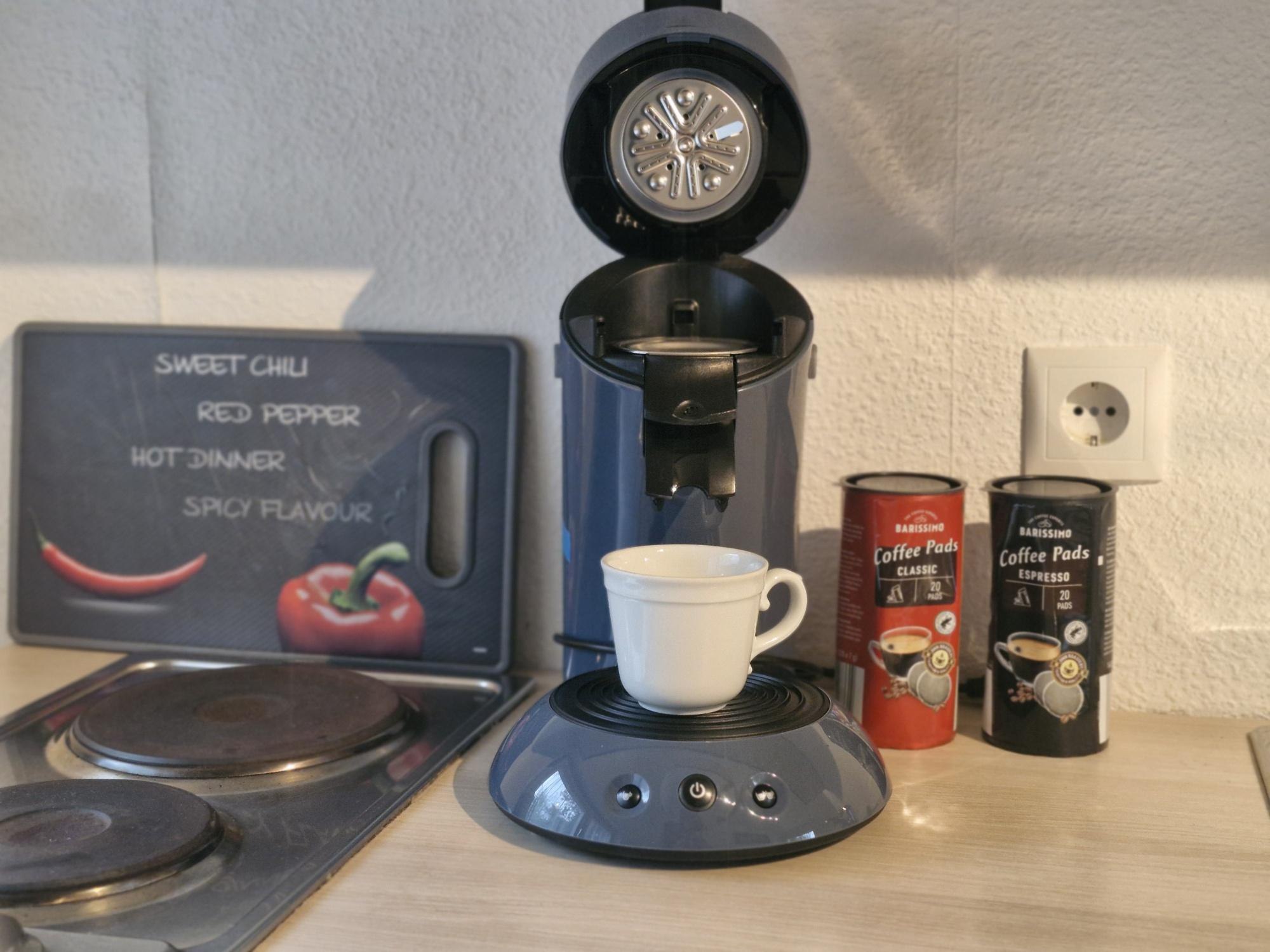 Het woongedeelte heeft een kleine kitchenette met koelkast, koffiezetapparaat en mini-oven. Keukenhanddoeken en afwasmiddel zijn inbegrepen. De slaapbank (150x200mm) in de woonkamer is geschikt voor een extra gast. Op verzoek kan er ook een kinderstoel worden geleverd.