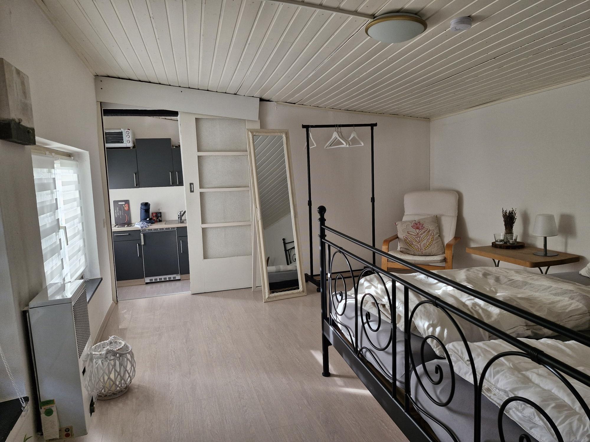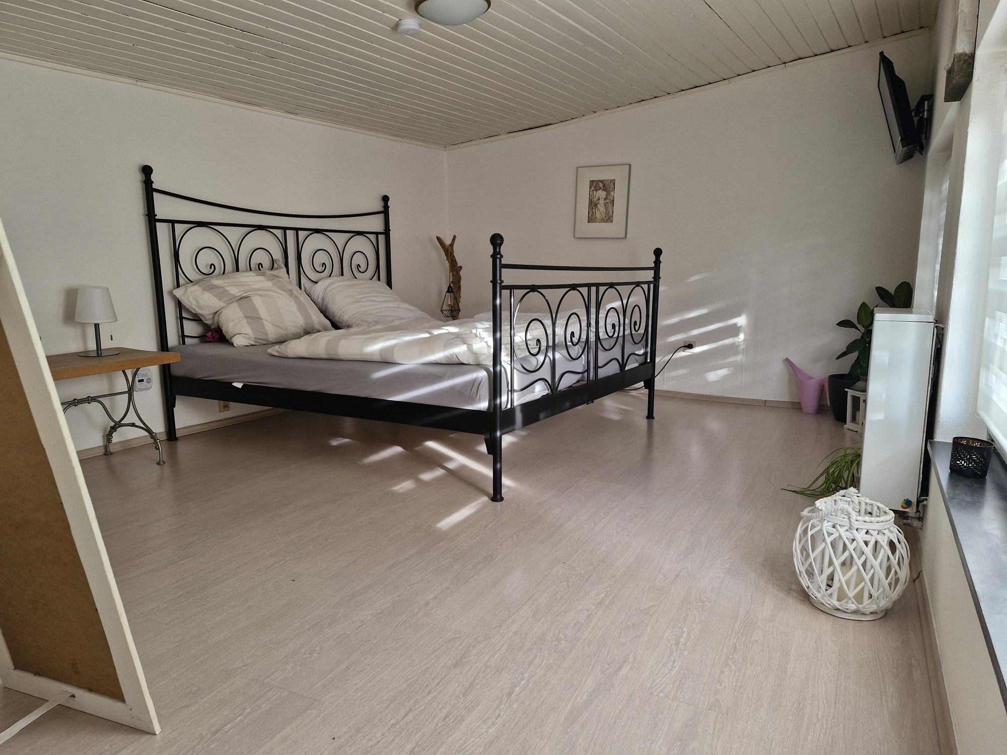De slaapkamer heeft een groot tweepersoonsbed van 180x200 cm met aparte matrassen. Een reisbedje kan op verzoek worden verstrekt. Vers beddengoed is inbegrepen.