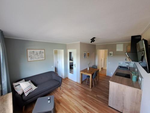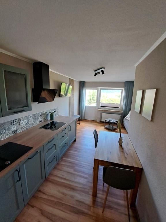 Ons vakantieappartement Wandereck is een ongeveer 30 m² grote woning die perfect geschikt is voor 1 - 2 personen en alles biedt wat je nodig hebt voor een vakantie. De slaapkamer is voorzien van een bed van 1,80 m x 2 m, evenals een kleine kledingkast. In de woongedeelte dat grenst aan een open keuken bevindt zich een bank en een televisie. Van daaruit heb je ook een mooi uitzicht op de omgeving. In de aangrenzende uitgeruste keuken, o.a. met koelkast, fornuis met afzuigkap, vaatwasser, waterkoker, toaster en koffie-padmachine, kun je ontbijt en kleine lekkernijen bereiden. Daarnaast is er een eettafel die geschikt is voor 2-3 personen. De ruime badkamer/WC met douche en wastafel grenst direct aan de keuken. Een föhn, handdoeken, beddengoed en toiletpapier behoren tot de uitrusting.