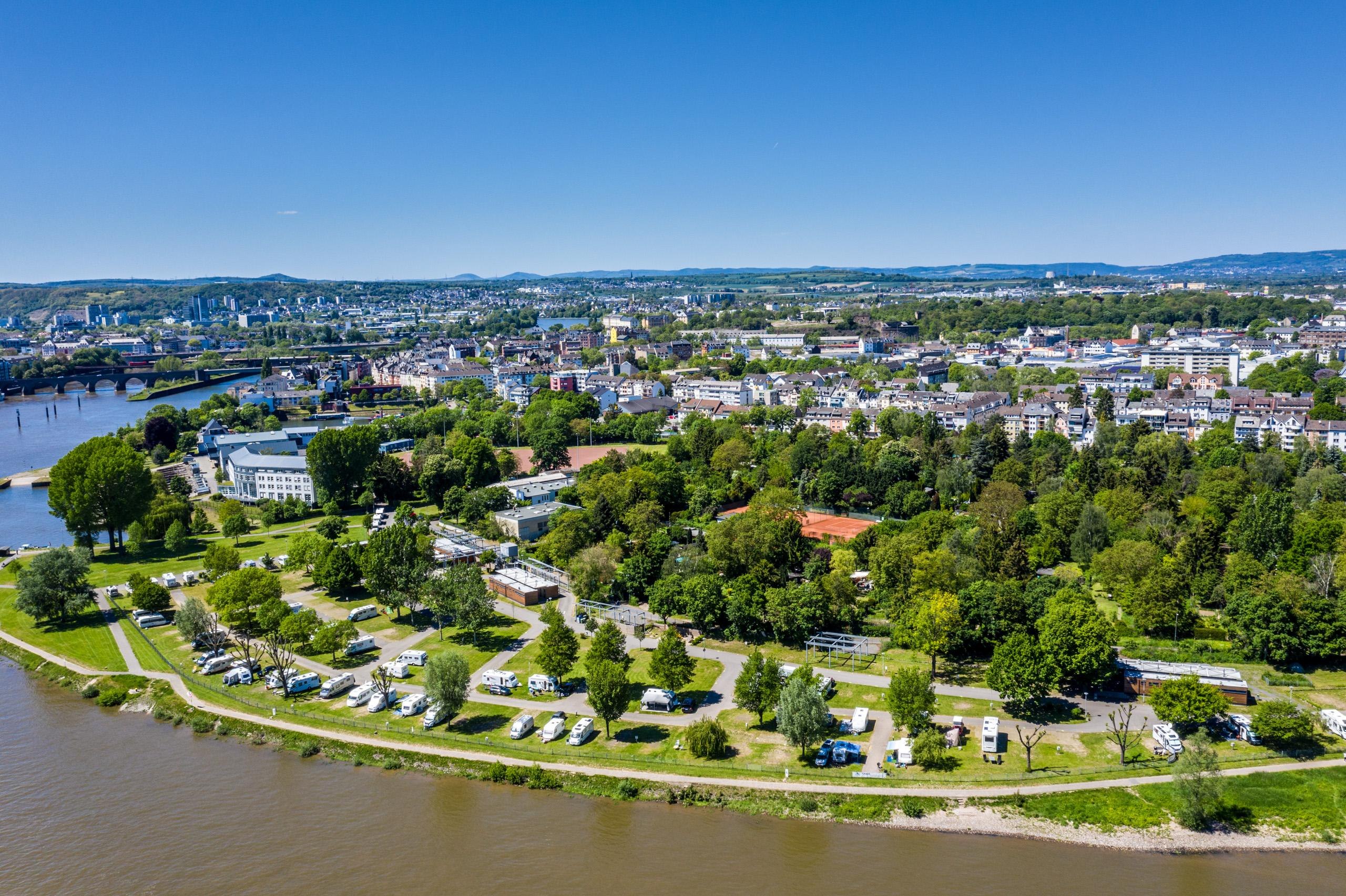 De camping biedt ongeveer 200 verzorgde staanplaatsen met een prachtig uitzicht op het rivierlandschap en de vestiging Ehrenbreitstein.