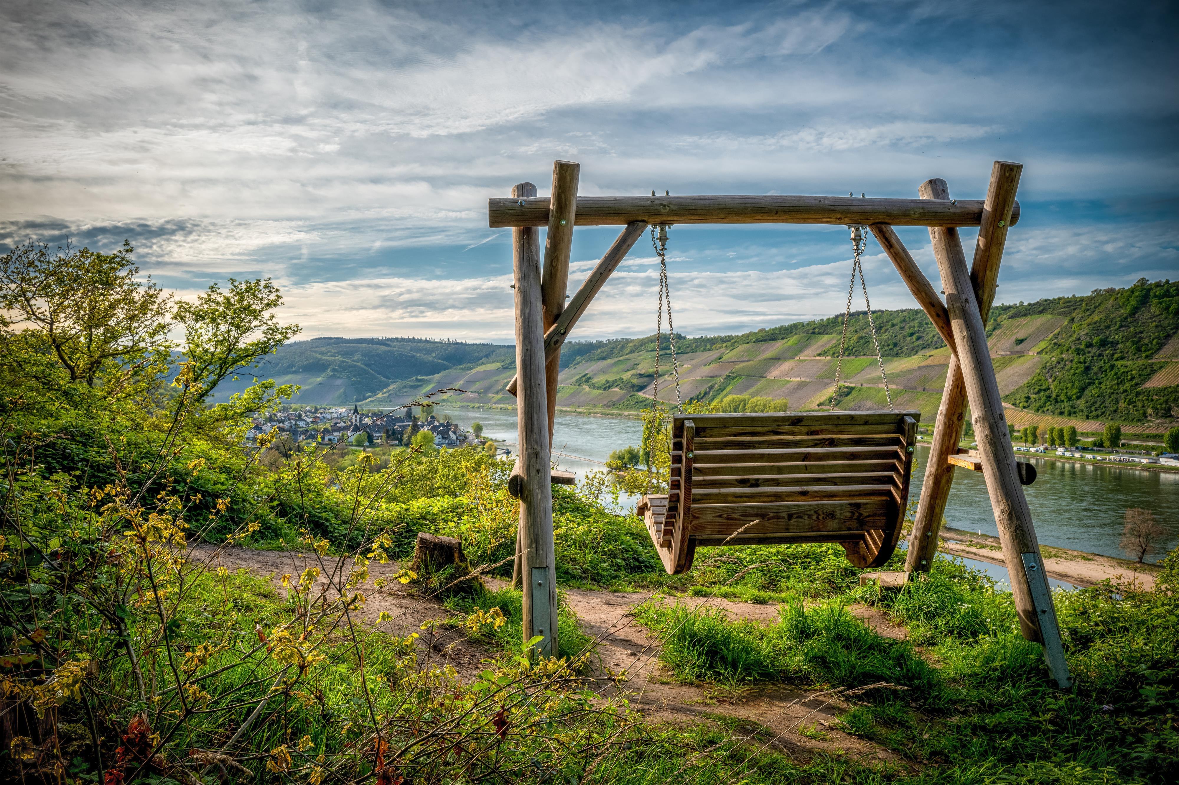 De Rijnschommel is een hoogtepunt op de Langhalsweg, die in 2024 werd uitgeroepen tot “mooiste wandelroute van Duitsland”. Op de schommel kun je genieten van een fantastisch uitzicht waar de Rijn van west naar oost stroomt.