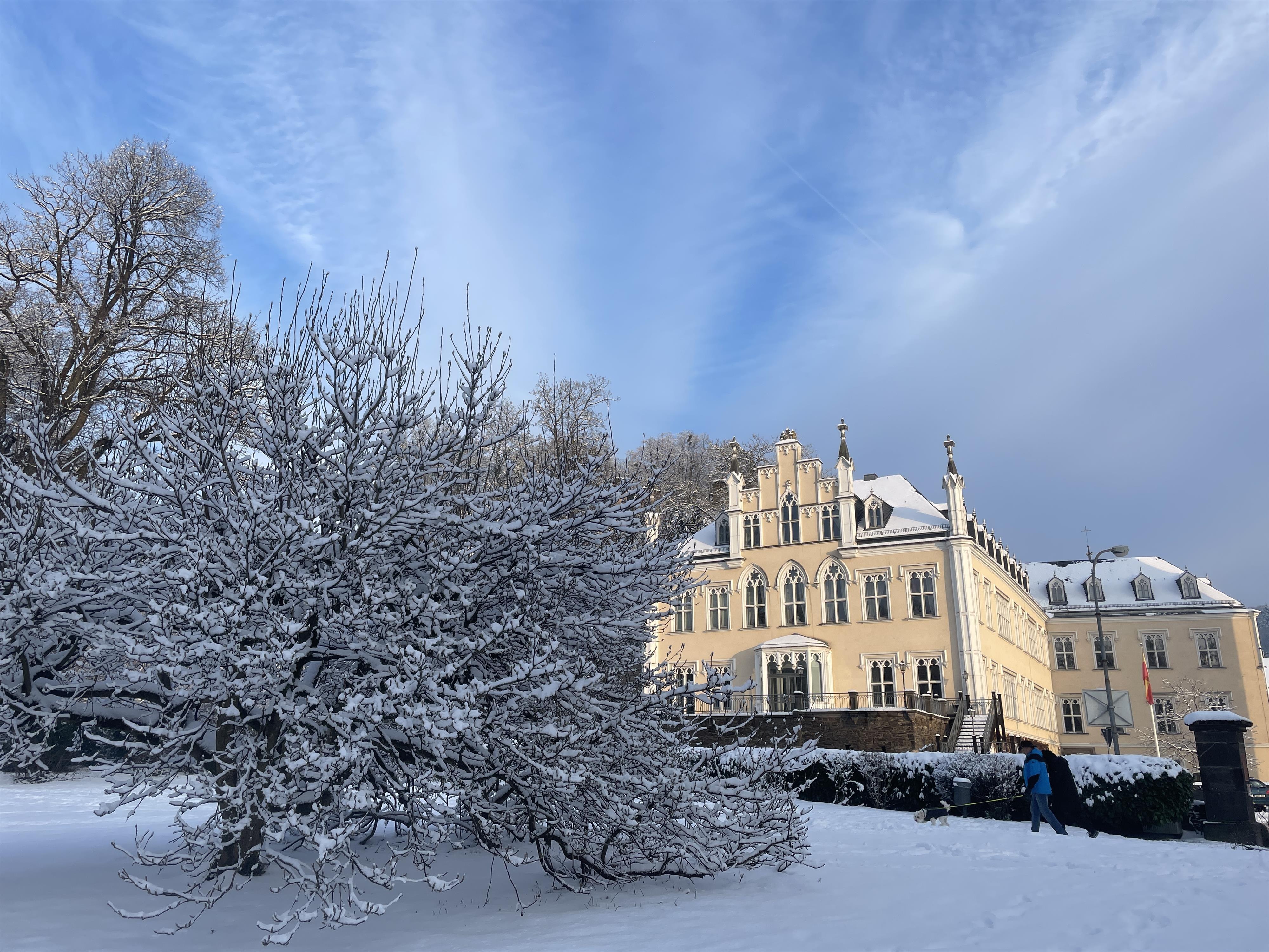 Toen prins Ludwig het paleis halverwege de 19e eeuw liet herbouwen in neogotische stijl, werd Karl-Friedrich Thelemann gemaakt door de bekende tuinkunstenaar Heinrich Siesmayer op 7 hectare voor het paleis, naar een ontwerp van de voormalige directeur van de botanische tuin in St. Petersburg. Een groot landbouwgebied, een park werd aangelegd als een Engelse landschapstuin, die samen met het kasteel en de kasteelheuvel van 2 hectare een speciaal, romantisch totaalensemble zouden moeten vertegenwoordigen.
